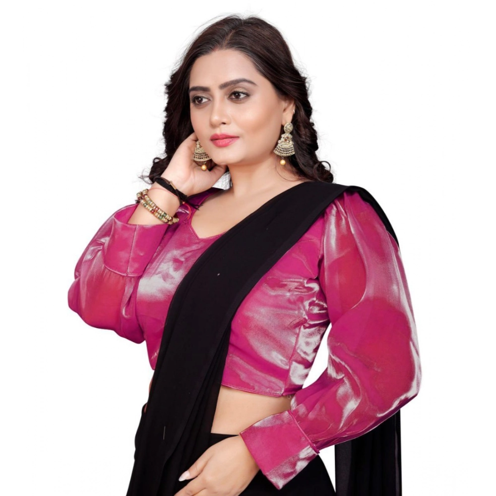 Generic Women’s Organza Plain Readymade Blouse (Pink, Size: Free Size)