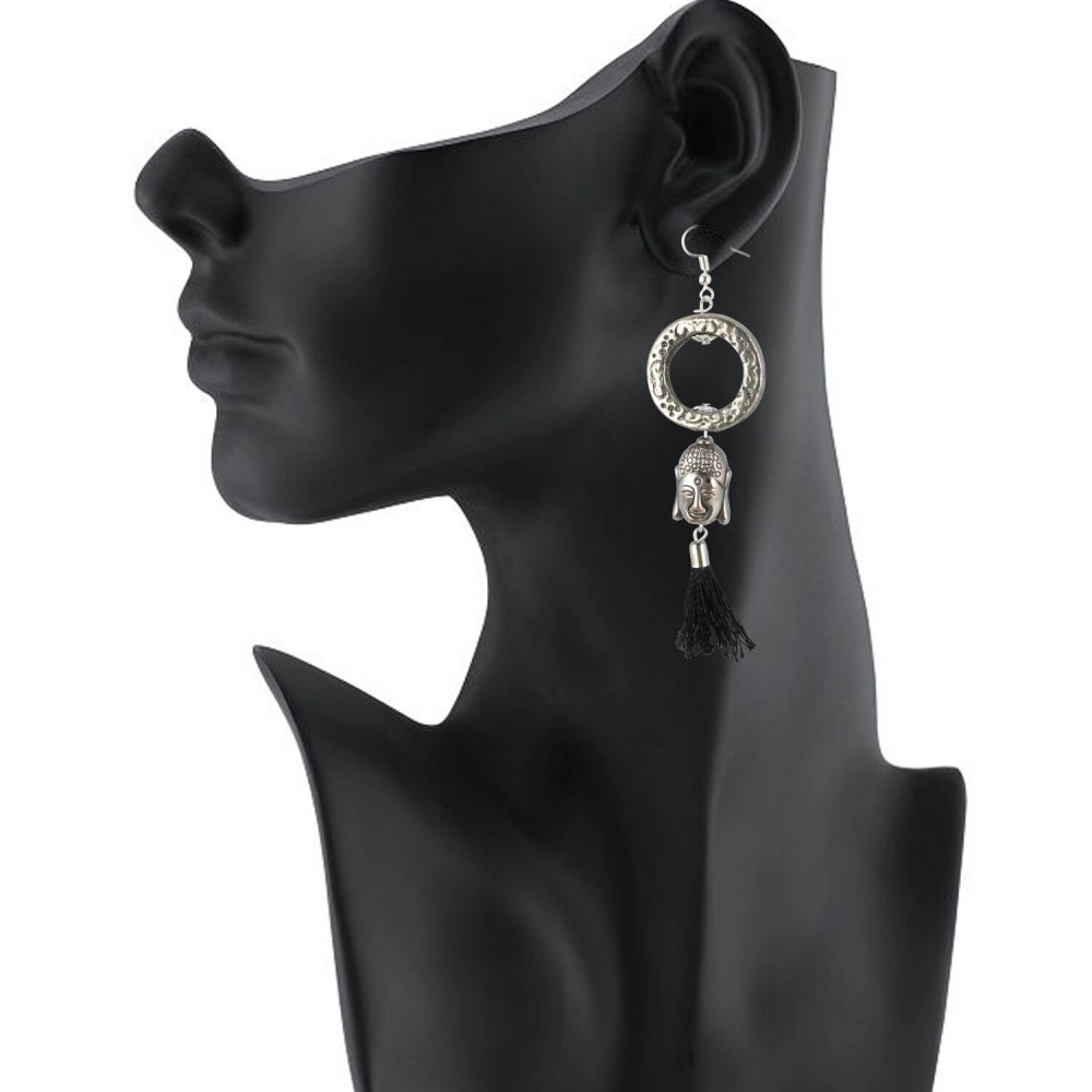 Women’s Oxidized Silver Plated Buddha Dangle Earrings – Ethnic Style