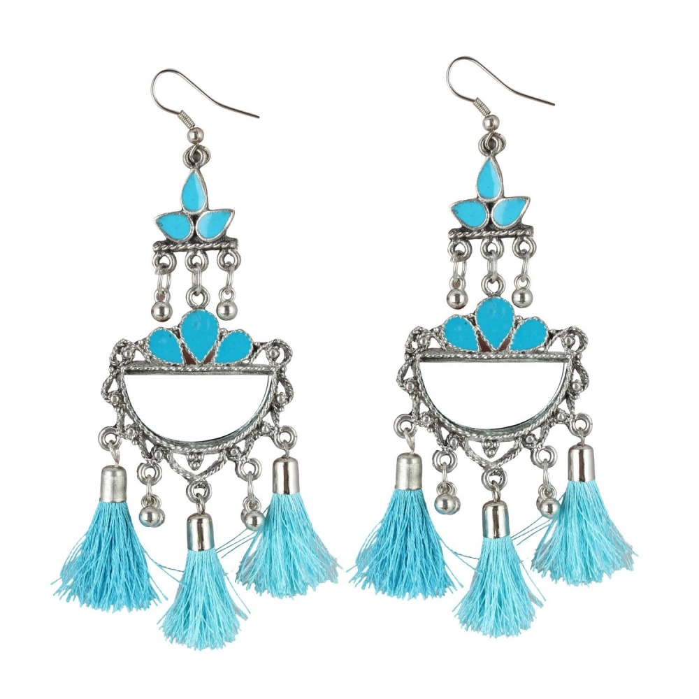 Women’s Oxidized Silver Plated Firoji Tassel Earrings – Blue