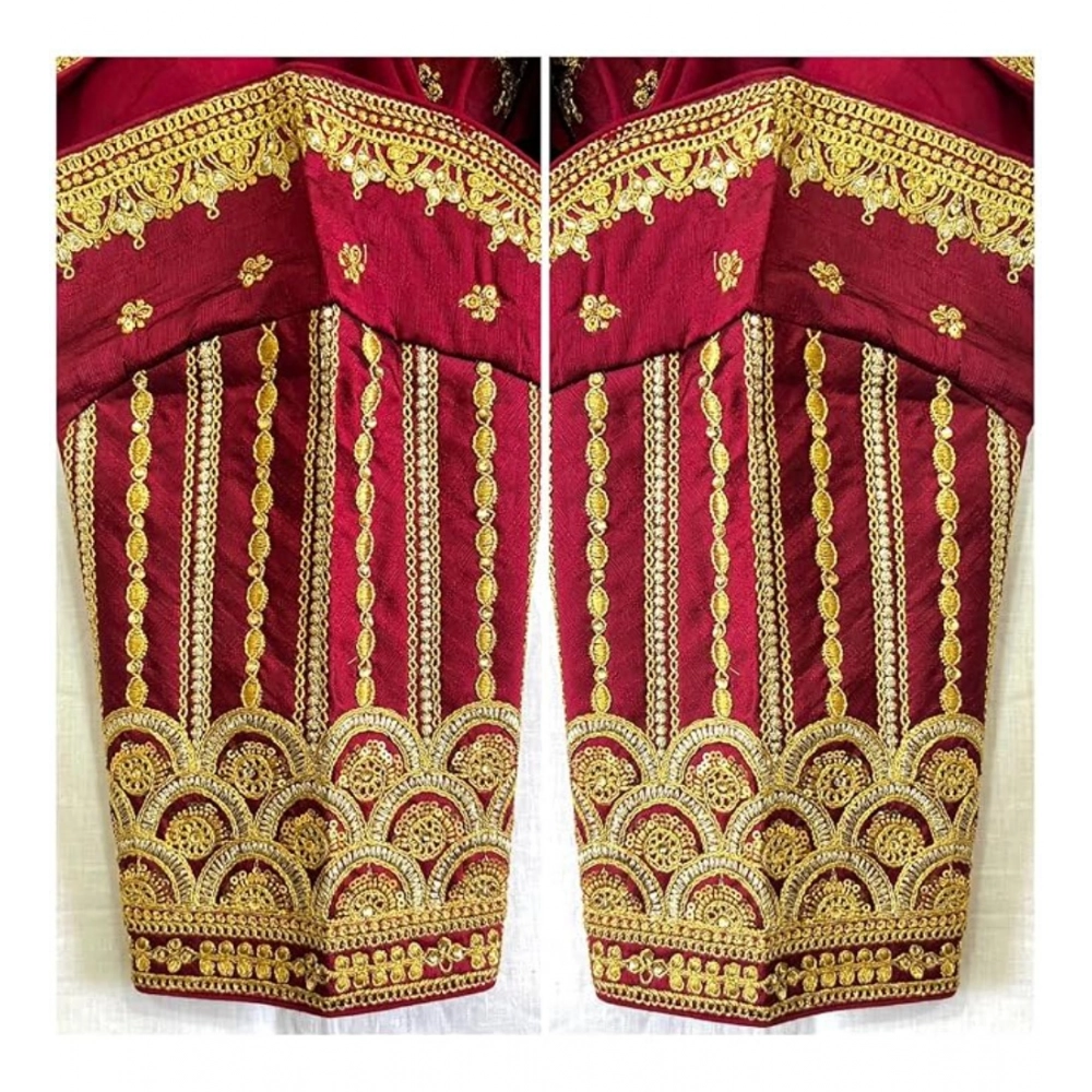 Women’s Phantom Silk Embroidery Round Neck Short Sleeve Readymade Blouse