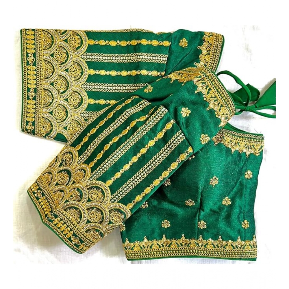 Generic Women’s Phantom Silk Embroidery Round Neck Short Sleeve Readymade Blouse (Green, Free Size)