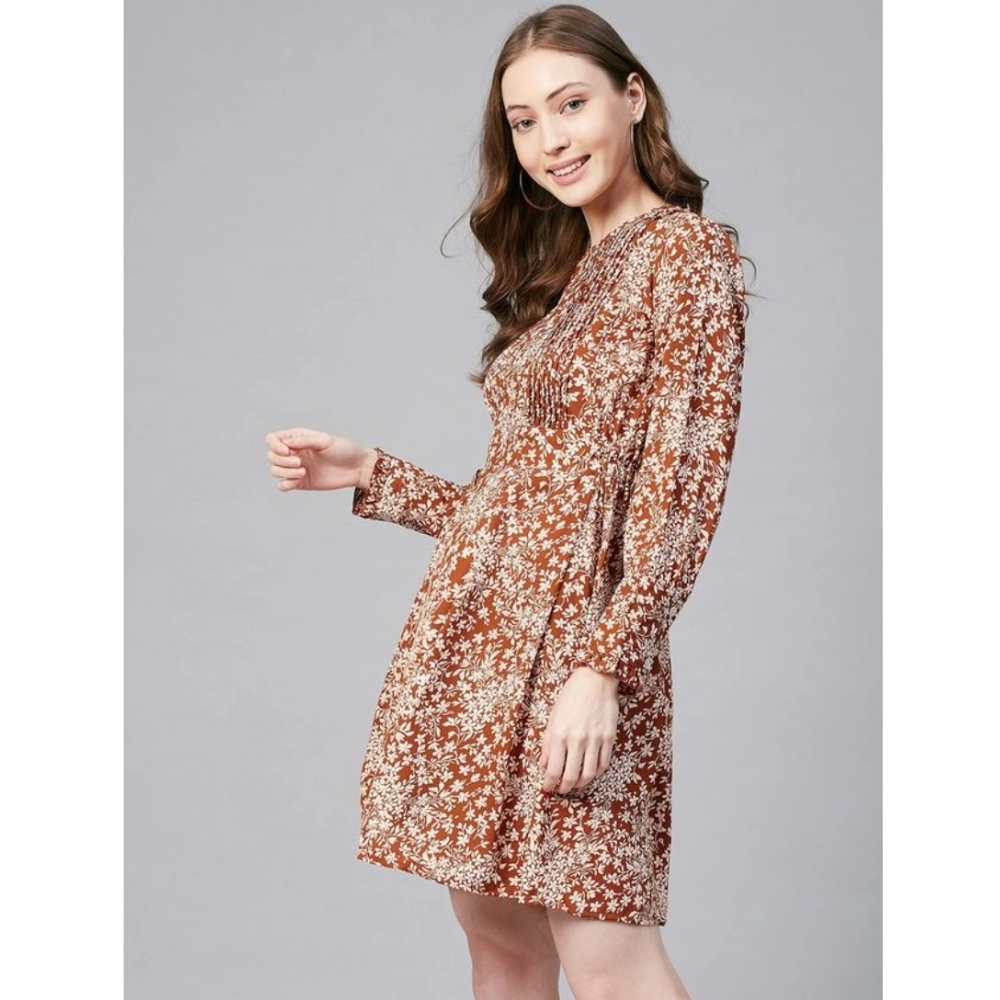 Generic Women’s Polyester Floral Long Sleeves Above Knee Dress (Rust)