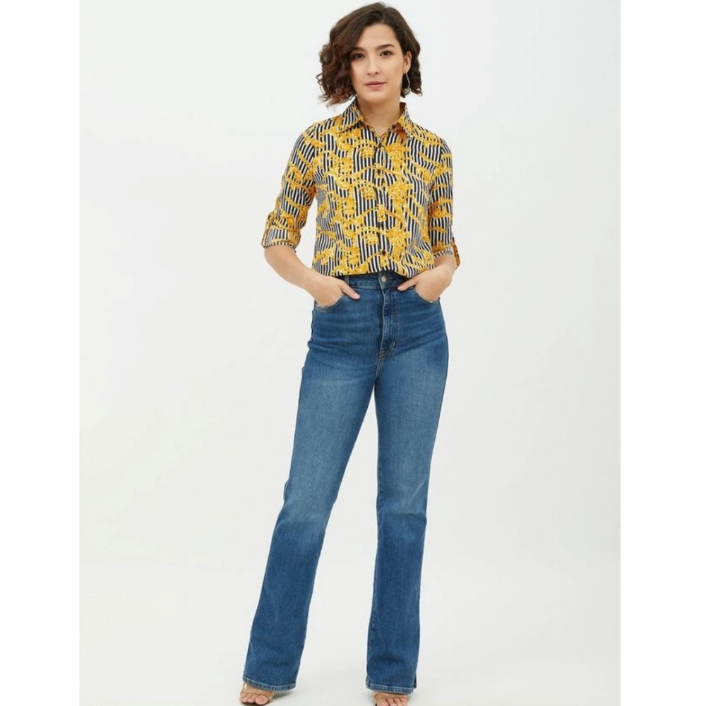 Be the first to review “Generic Women’s Polyester Printed Roll Up Sleeve Standard Length Shirt (Mustared)”