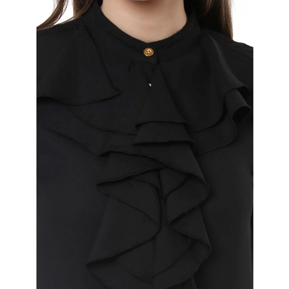 Generic Women’s Polyester Ruffled Long Sleeves Top (Black)