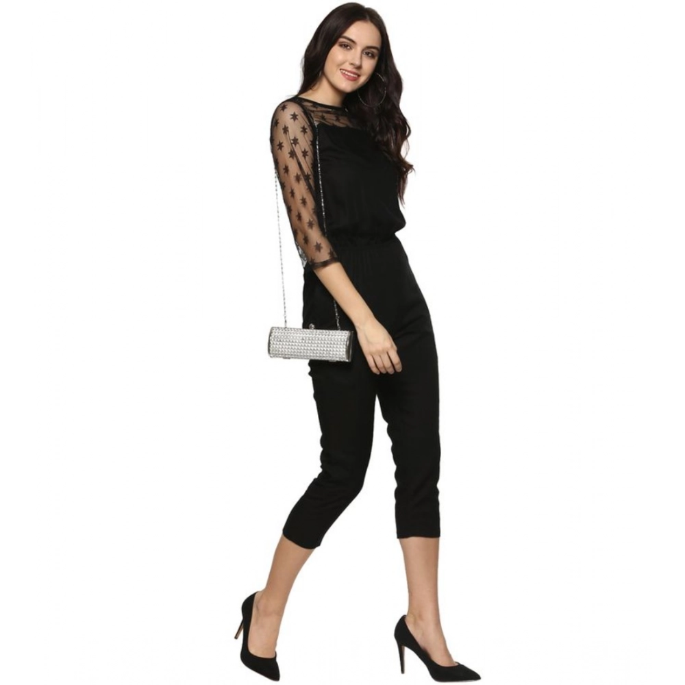 Generic Women’s Polyester Self Design 3/4th Sleeve Jumpsuit (Black)