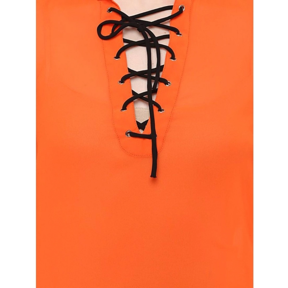 Generic Women’s Polyester Solid Long Sleeves Regular Top (Orange)