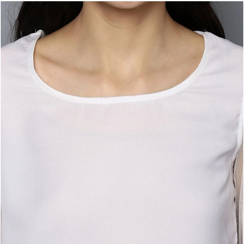 Generic Women’s Polyester Solid Tier Sleeve Top (White)