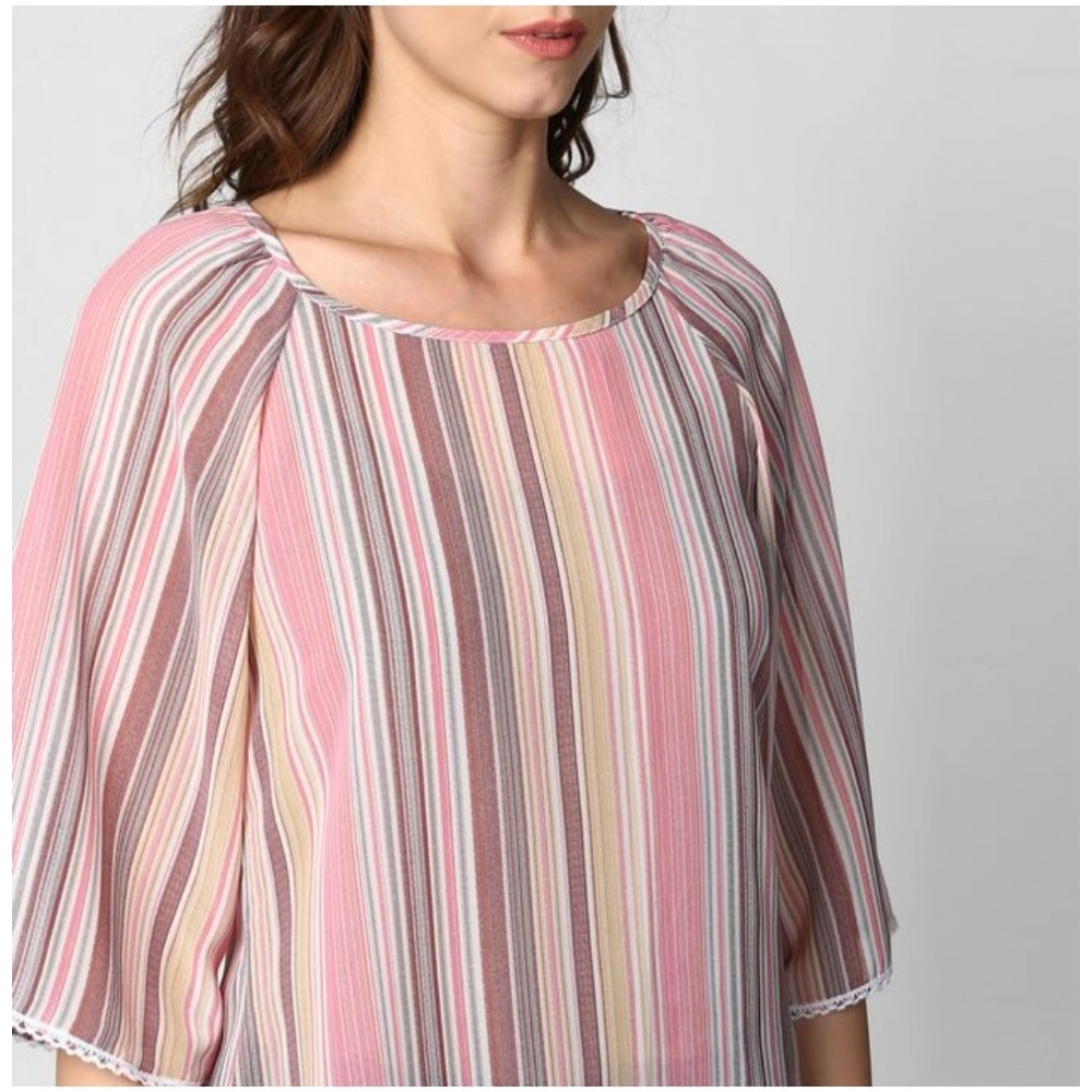 Generic Women’s Polyester Striped 3-4th Sleeves Top (Pink)