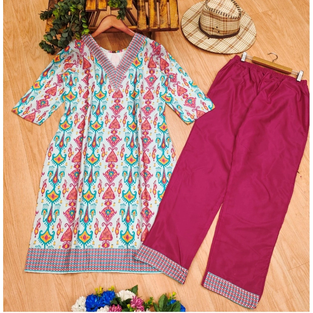 Women’s Rayon Printed Kurti With Pant Set