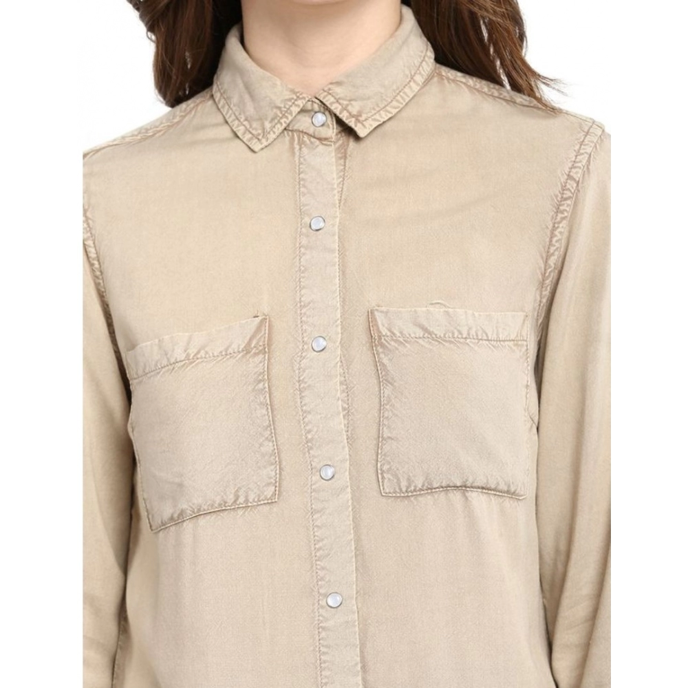 Generic Women’s Rayon Solid Long Sleeves Standard Length Shirt (Beige)