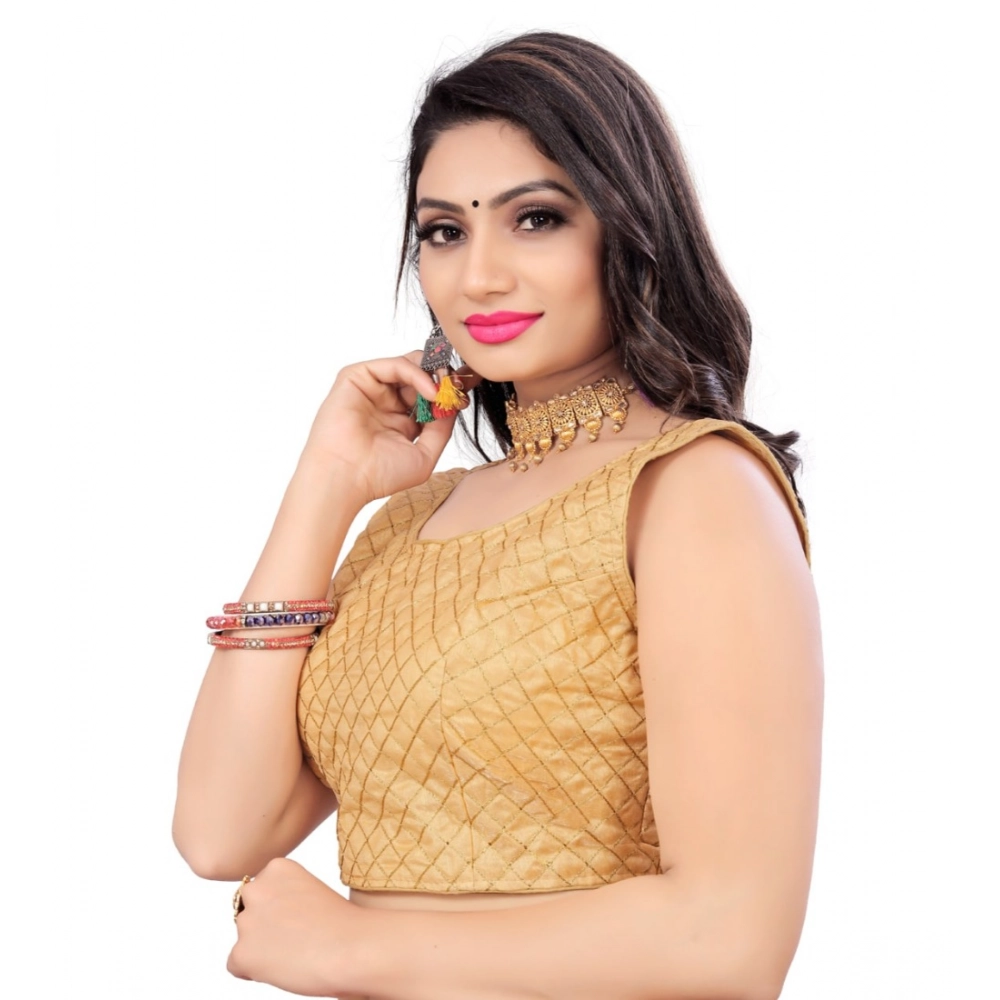 Generic Women’s Satin Embroidery Readymade Blouse (Beige, Size: Free Size)