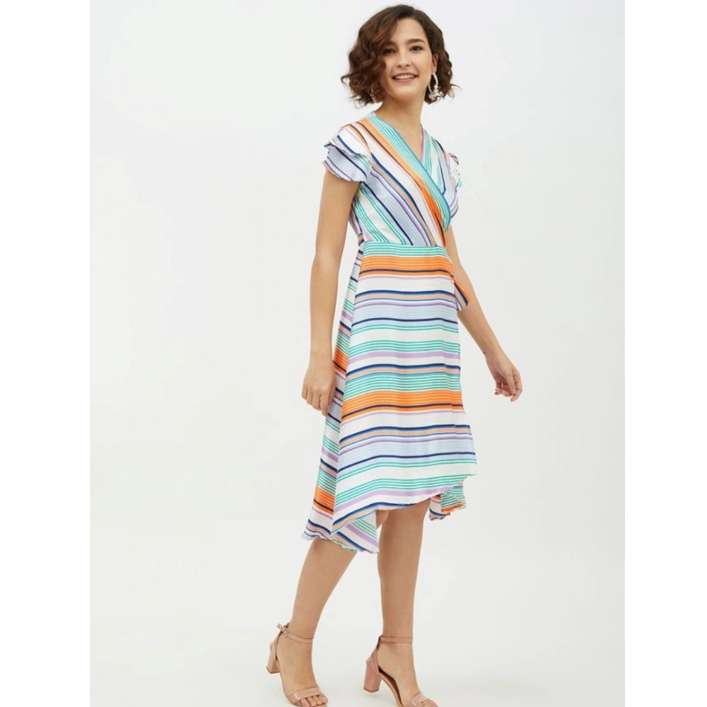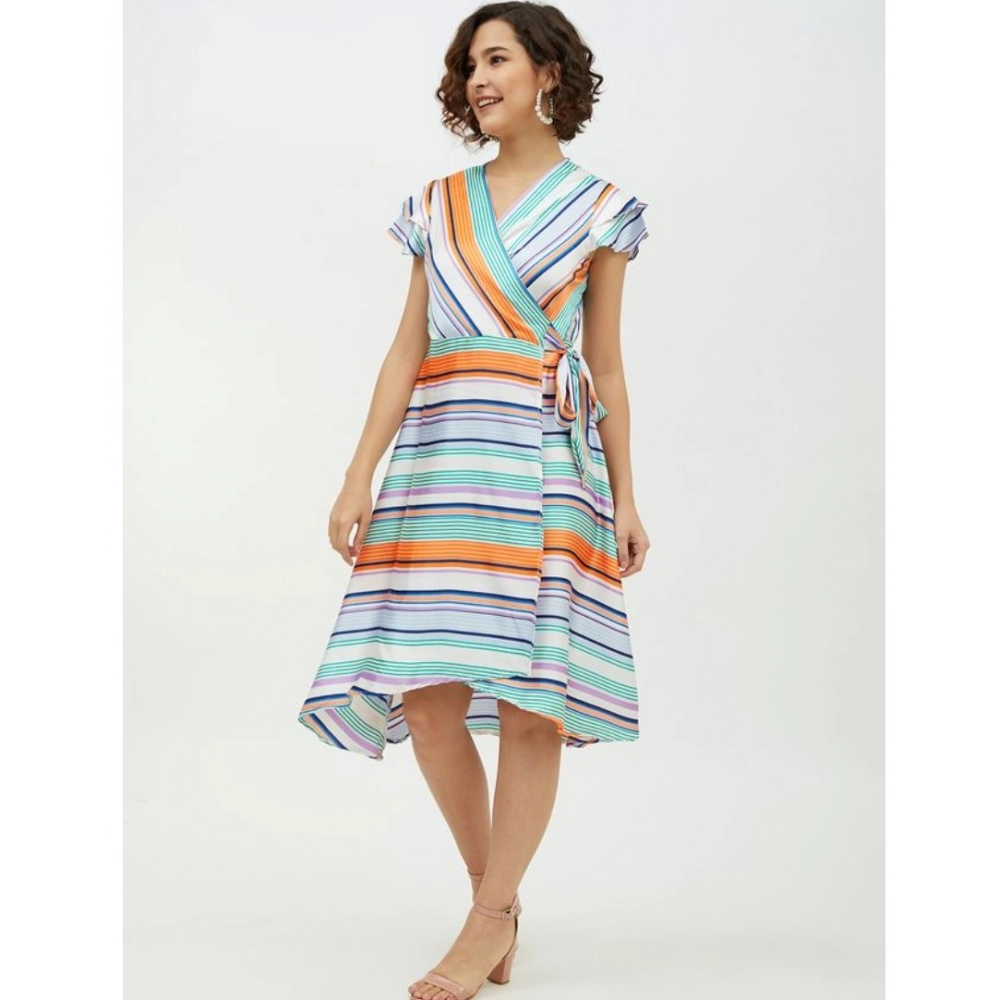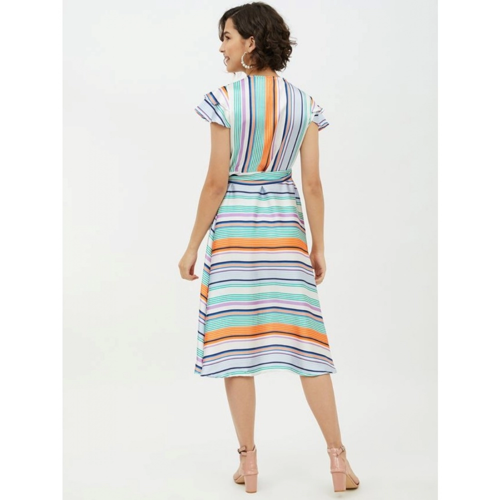 Generic Women’s Satin Striped Short Sleeve Knee-Length Dress (Multicolor)