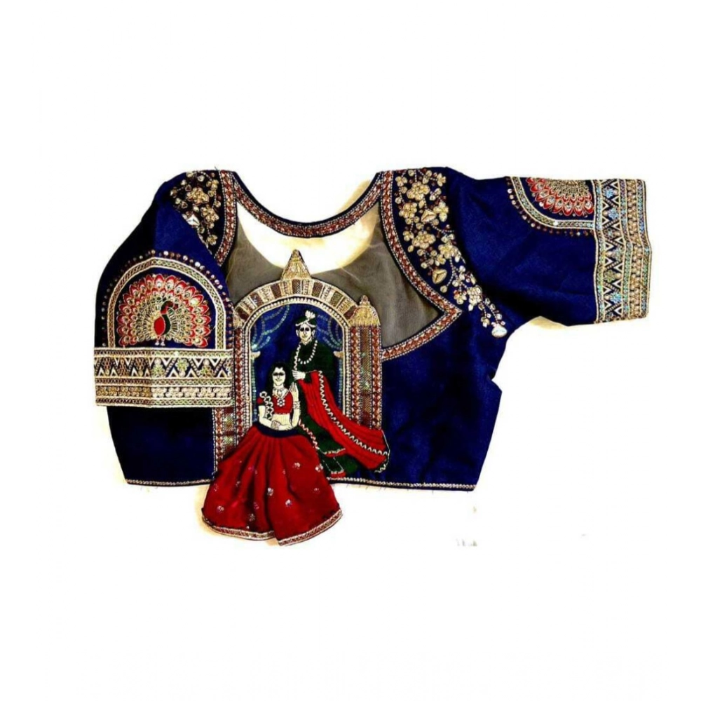 Generic Women’s Shining silk Sequance Round Neck Short Sleeve Readymade Blouse (Blue, Free Size)
