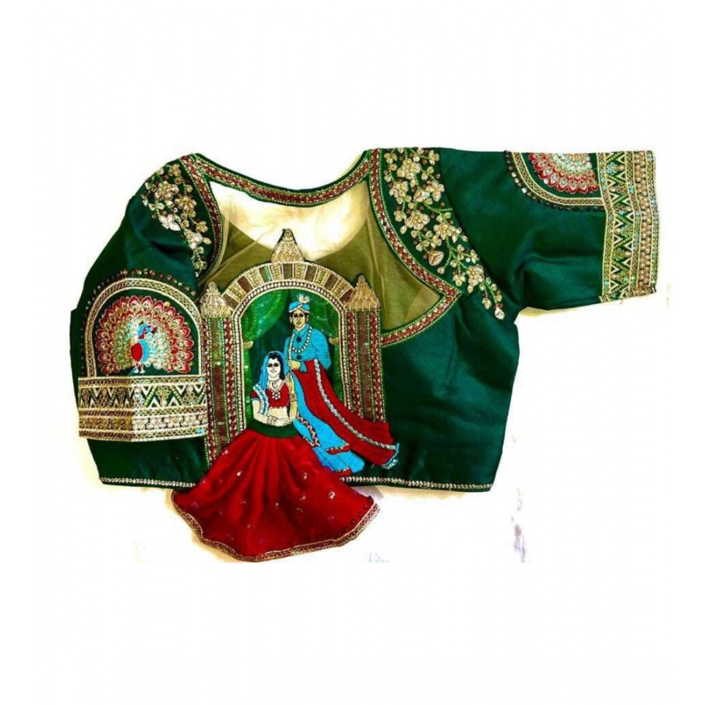 Generic Women’s Shining silk Sequance Round Neck Short Sleeve Readymade Blouse (Green, Free Size)