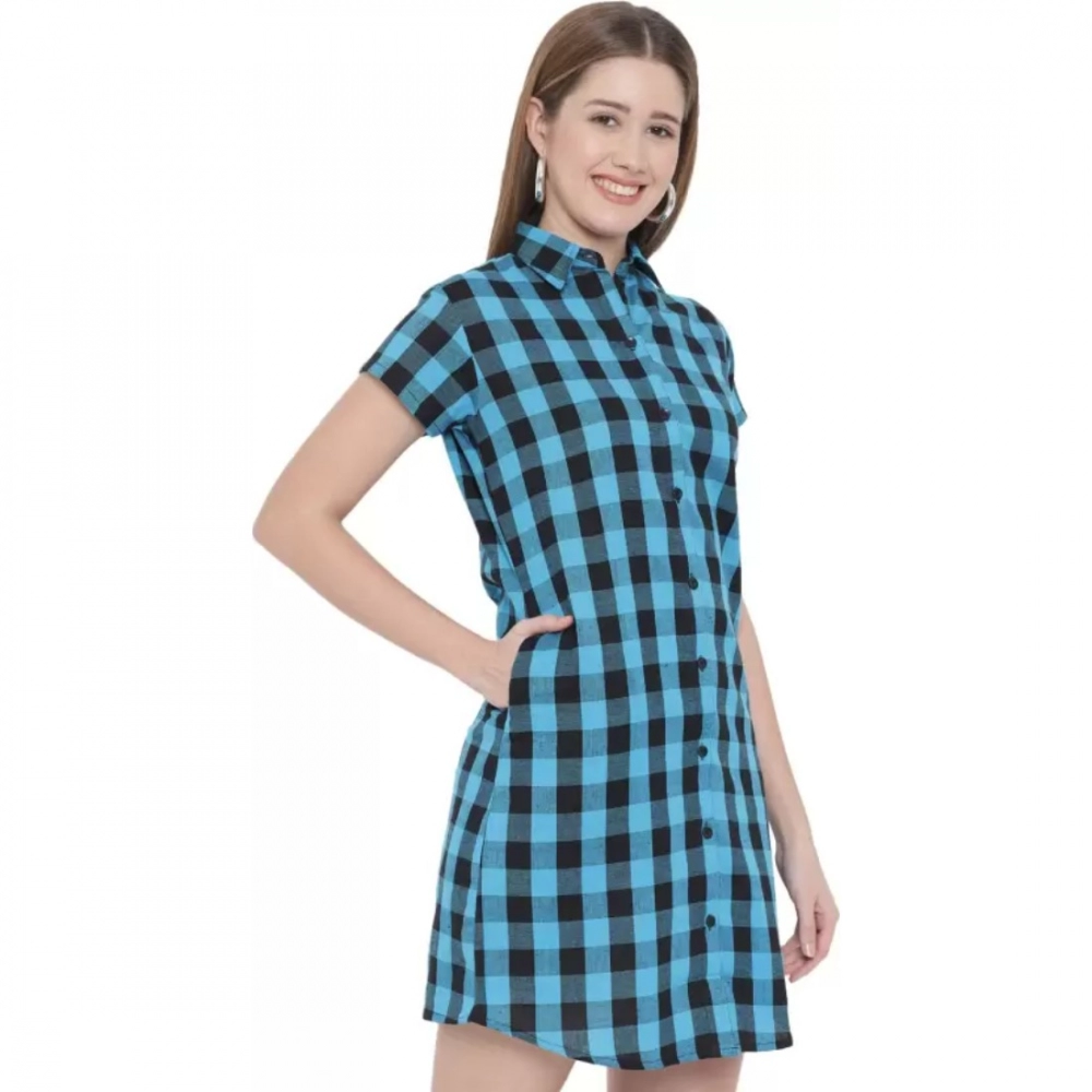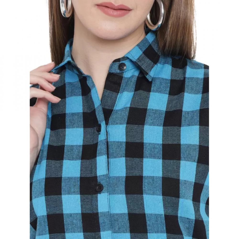 Generic Women’s Shirt Light Blue, Black Dress (Color:Light Blue, Material:Pure Cotton)
