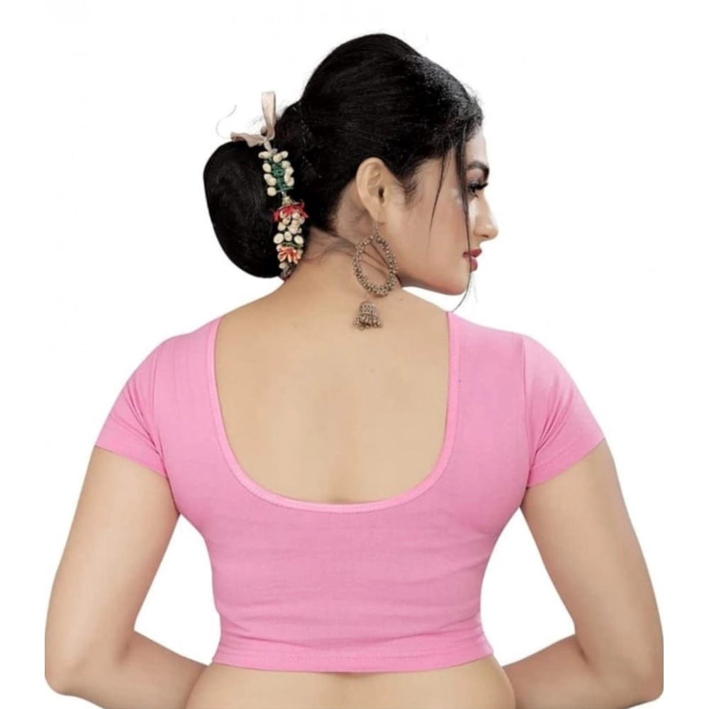 Generic Women’s Short Sleeve Cotton Lycra Readymade Blouse (Baby Pink, Free Size)
