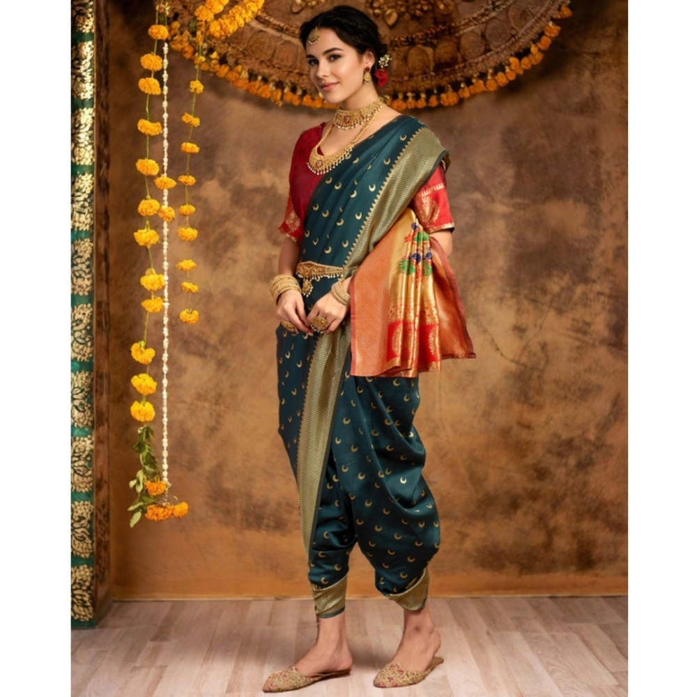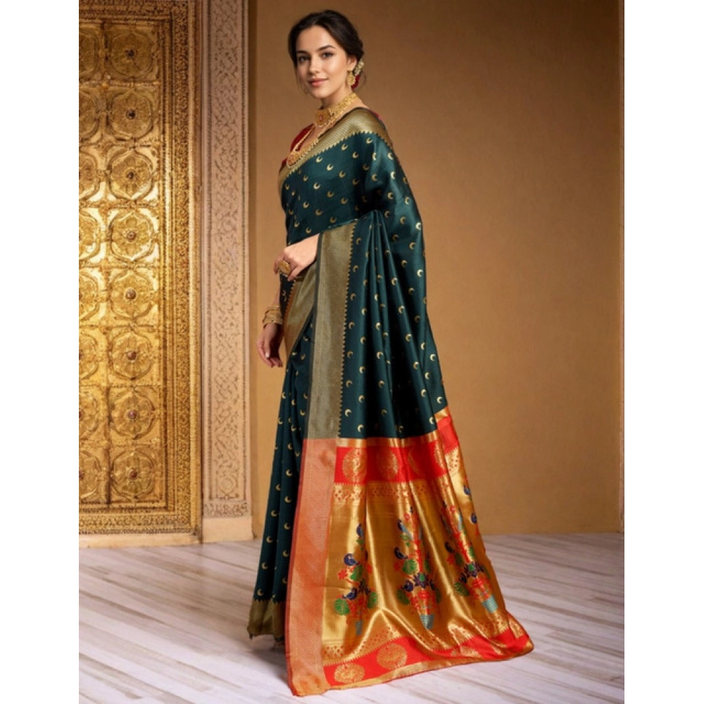 Generic Women’s Silk Blend Zari Woven Saree With Unstitched Blouse 5.5Mtr (Dark-Green)
