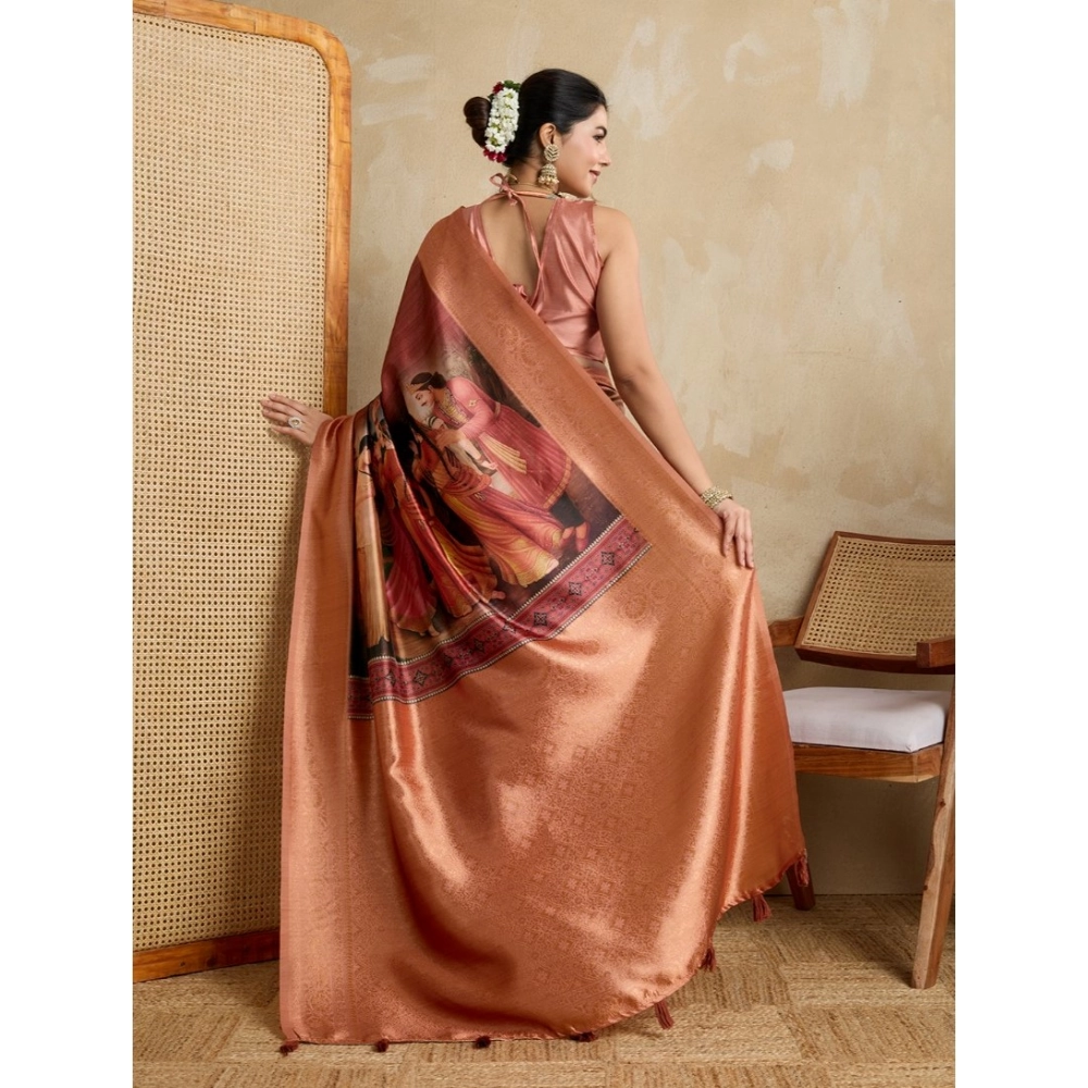 Generic Women’s Silk Printed Saree With Unstitched Blouse 5.5Mtr (Peach)