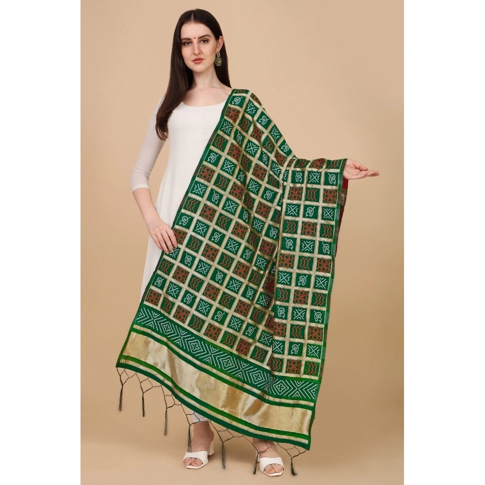 Generic Women’s Silk Pure weaving Work Duppatta (Green, Length: 2-2.3 Mtrs)