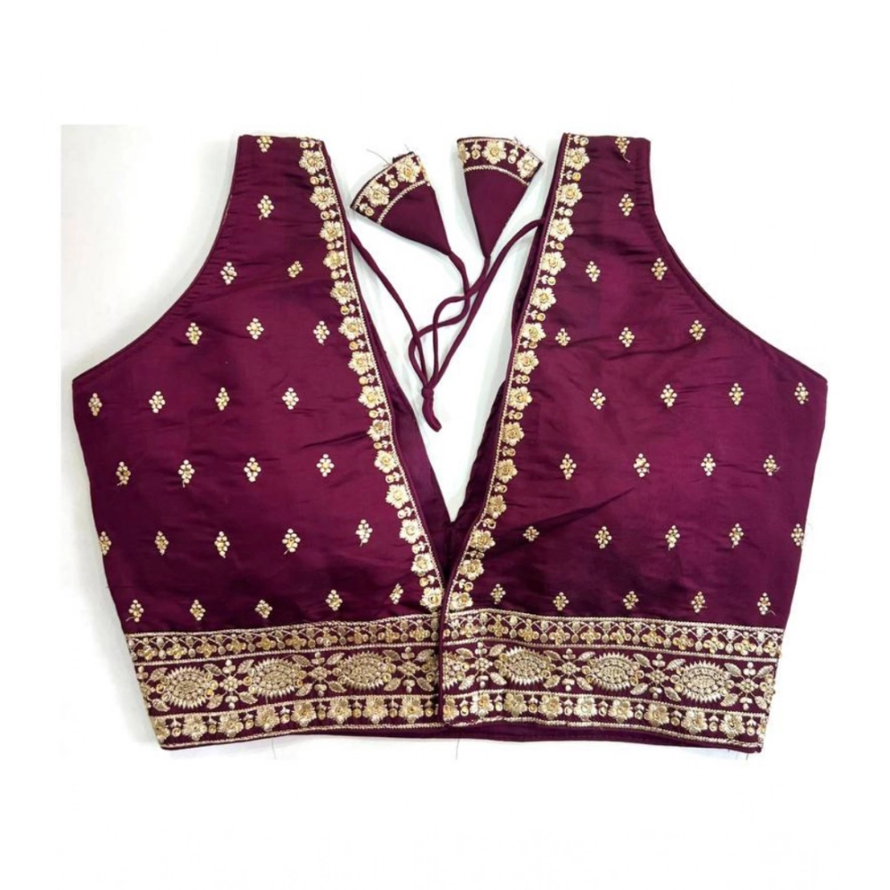 Generic Women’s Silk Thread work V Neck Sleeve Less Readymade Blouse (Wine, Free Size)
