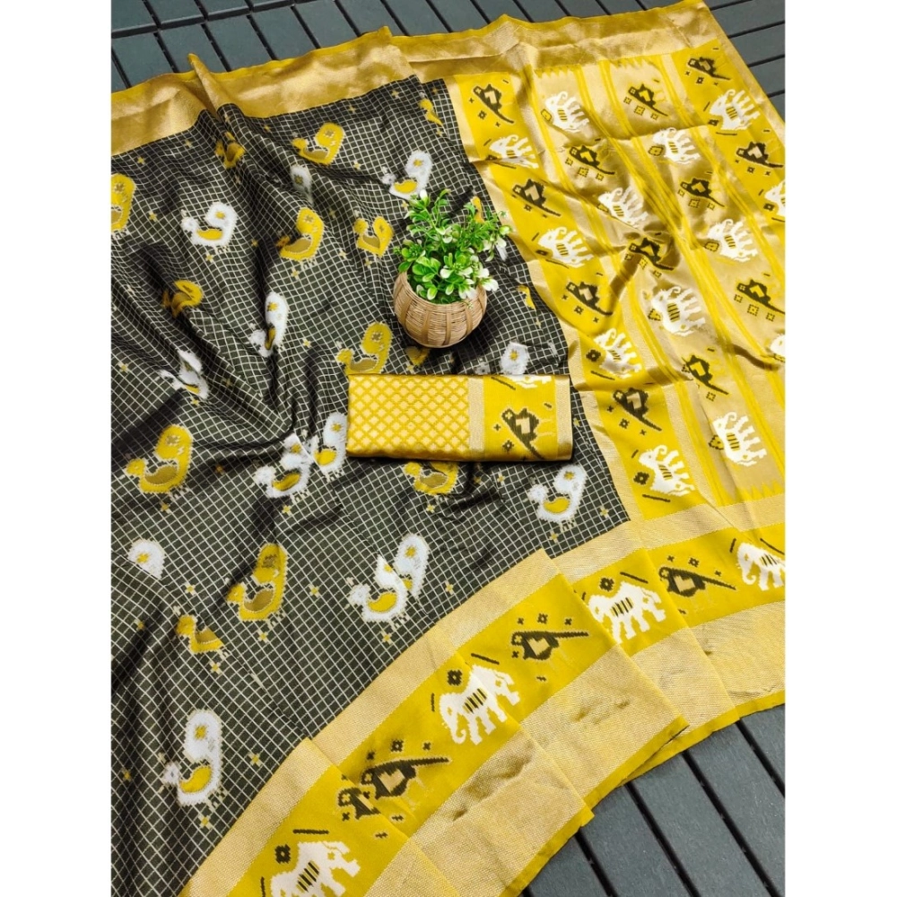 Women’s Soft Litchi Silk Jacquard Work Saree With Unstitched Blouse