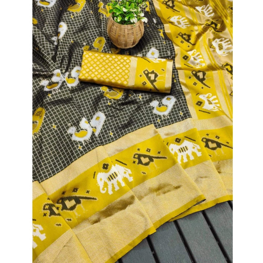Generic Women’s Soft Litchi Silk Jacquard Work Saree With Unstitched Blouse 5.5Mtr (Black)