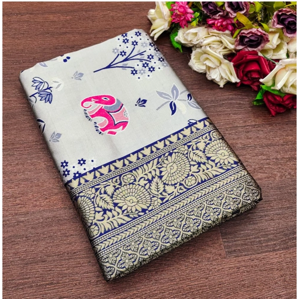 Women’s Soft Litchi Silk Jacquard Work Saree With Unstitched Blouse