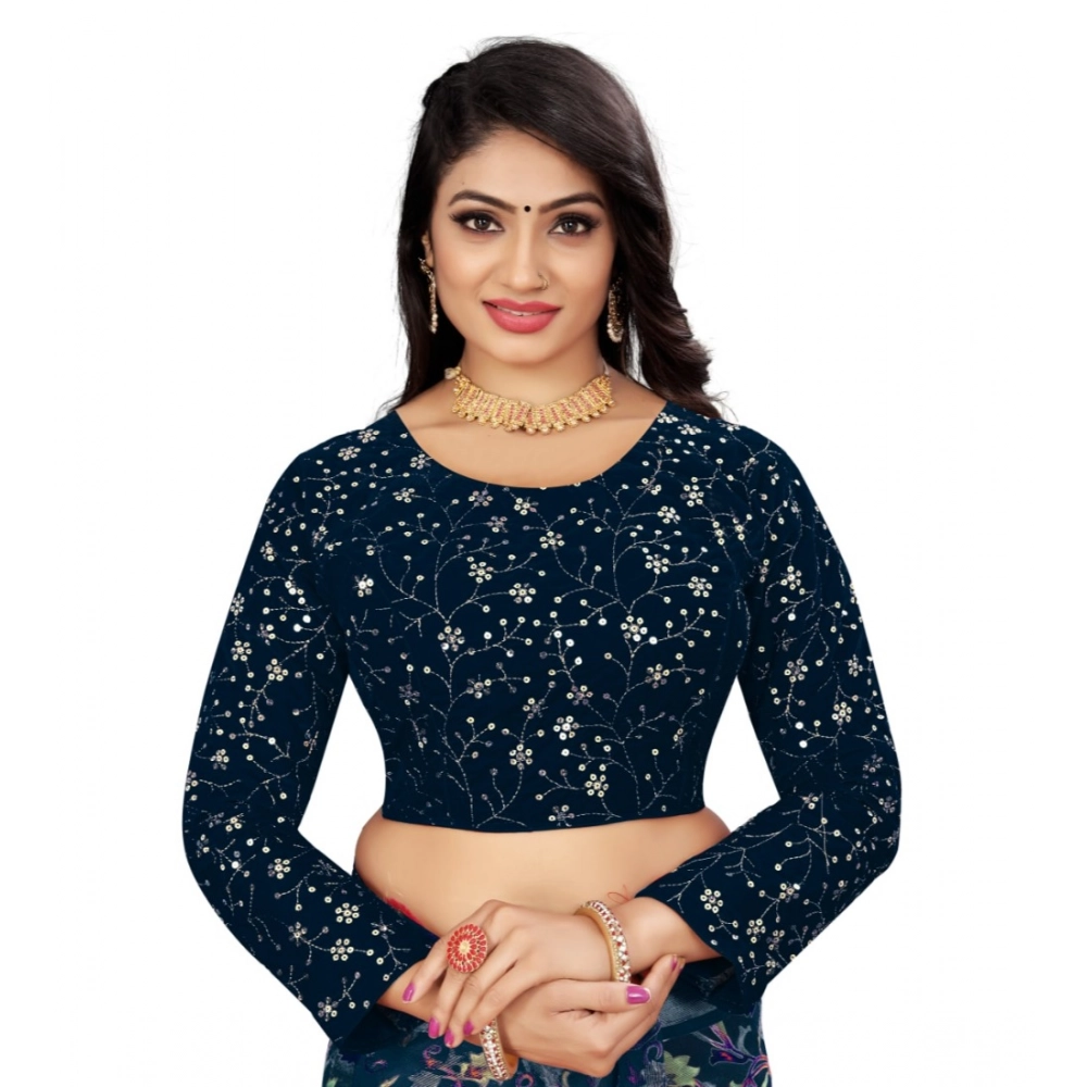 Generic Women’s Velvet Embroidery Readymade Blouse (Navy Blue, Size: Free Size)