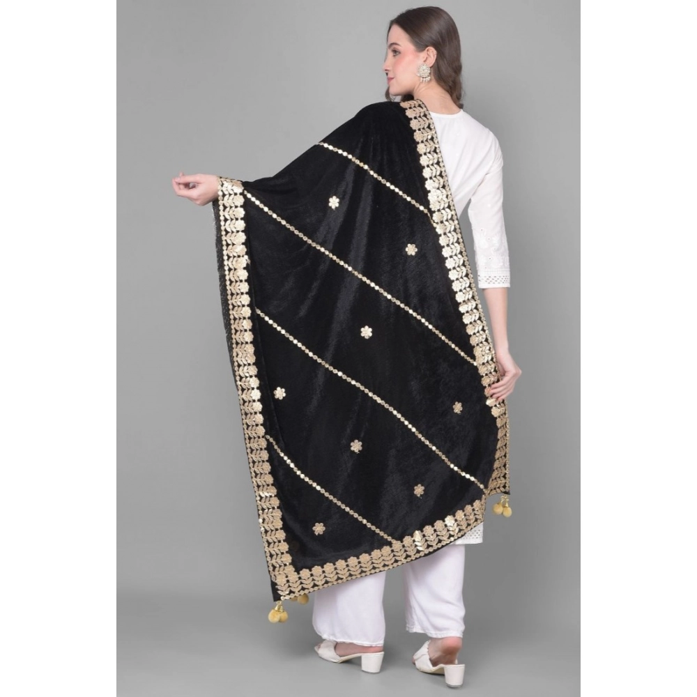 Generic Women’s Velvet Gotta Patti Dupatta (Black, Length: 2.25 to 2.50 Mtr)