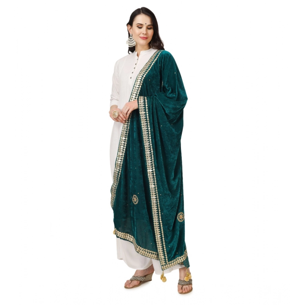 Generic Women’s Velvet Gotta Patti Dupatta (Dark Green, Length: 2.25 to 2.50 Mtr)