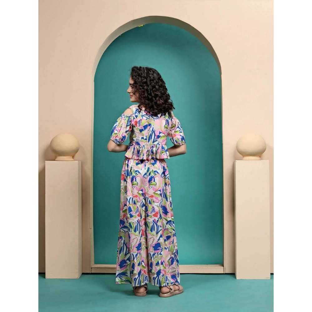 - Design: Stylish Printed Crop Top with Matching Free-Flowing Palazzo Pants