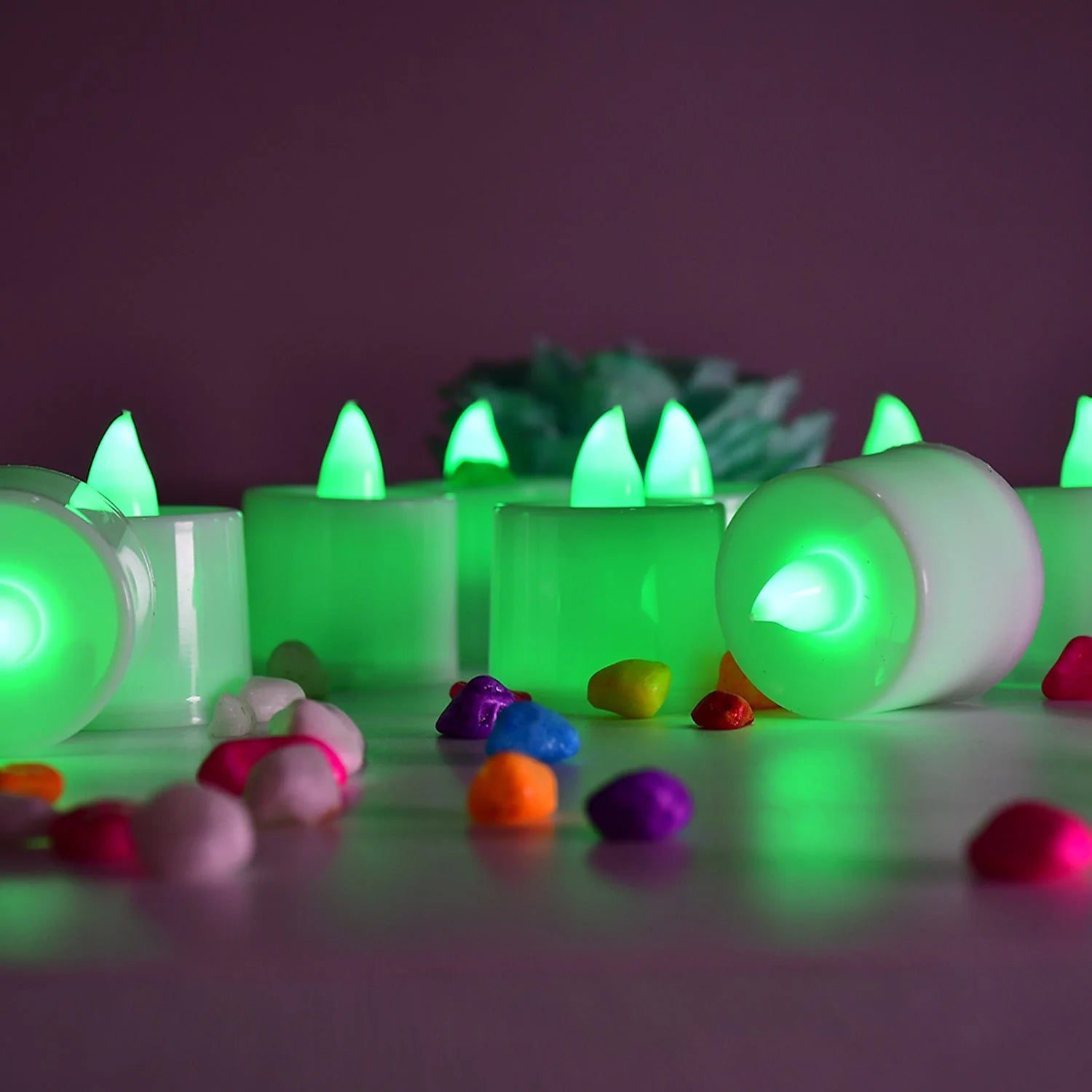 - CREATE AMBIENCE :- The warm Green flameless LED tea light candles flicker and provide the effect of an actual candle, perfect for decorating weddings, parties, gardens, patios, decks, restaurants, lanterns, kids projects, centerpieces et