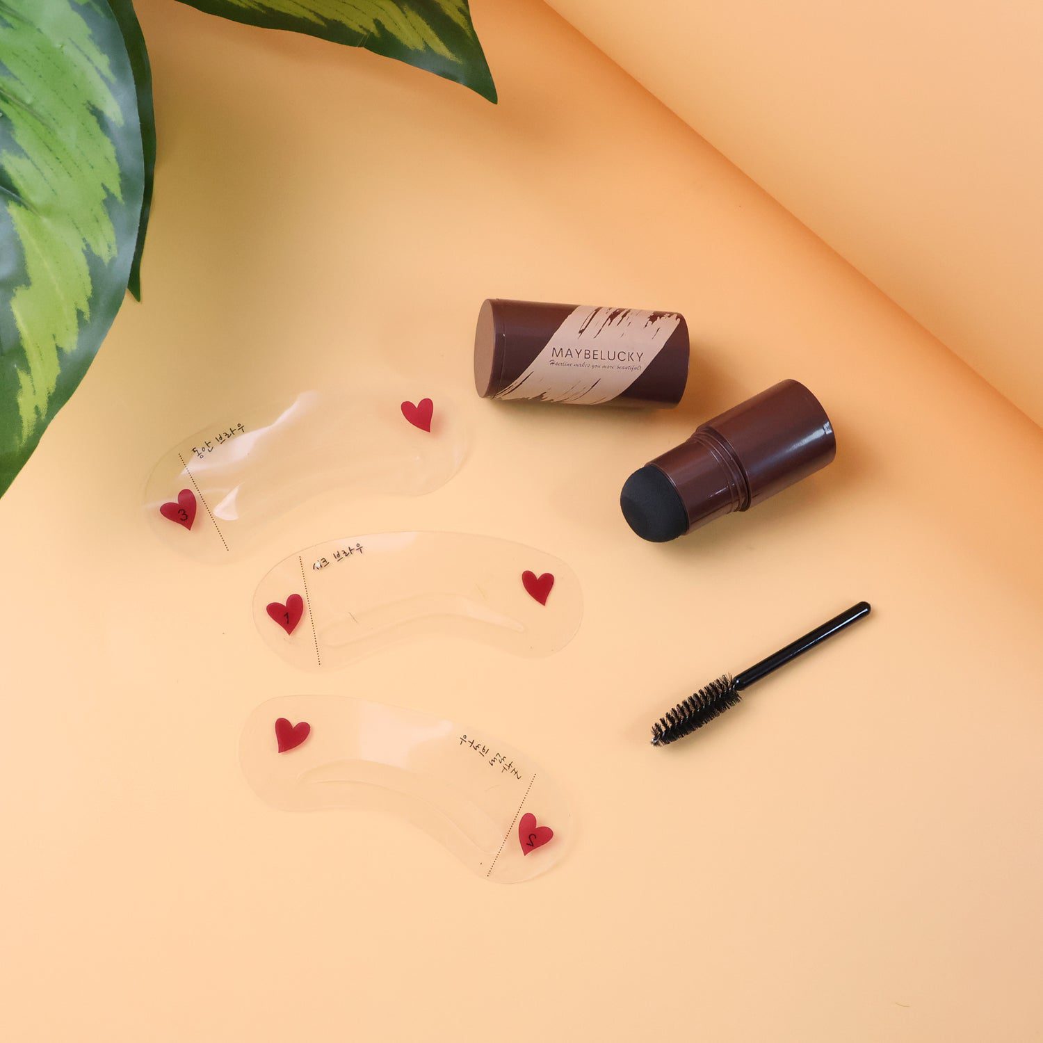 Set Includes: 1 Powder Stick with Cushion Puff, 3 Eyebrow Stencils, 1 Blending Brush