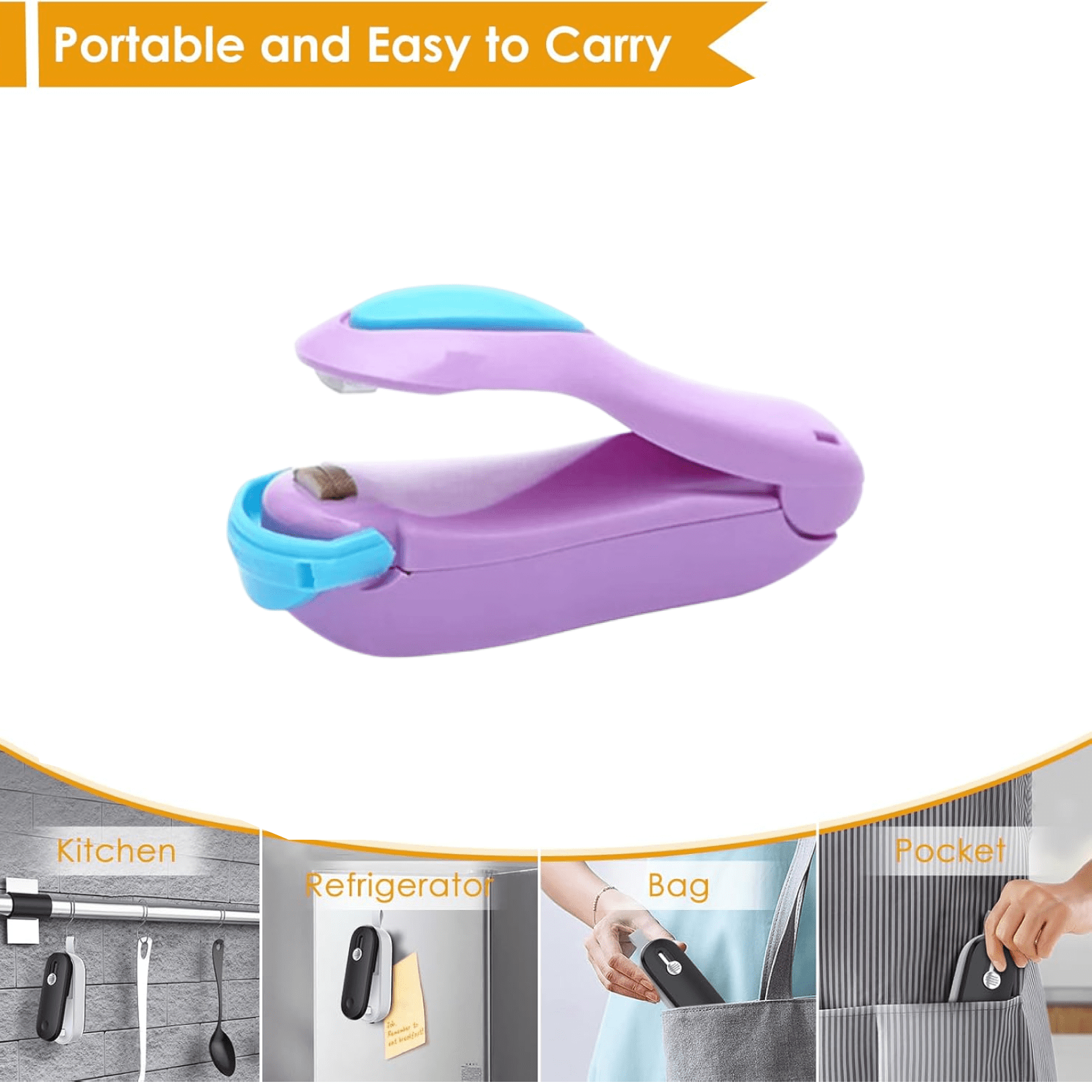 Get a handheld mini sealing machine for plastic bags. Ideal for sealing snacks and keeping food fresh. Compact and easy to use.