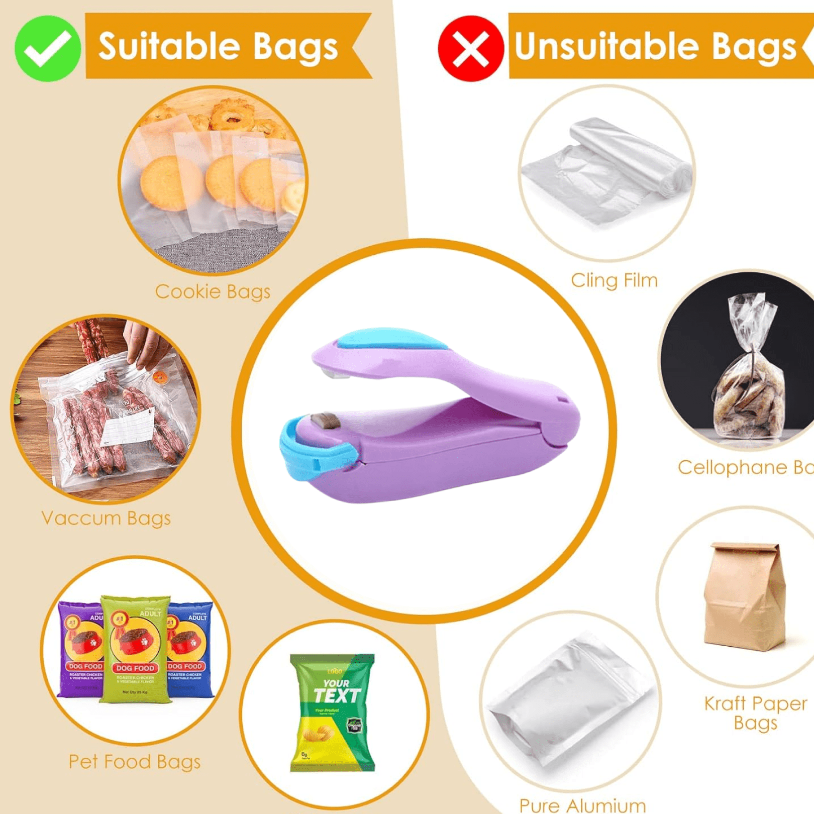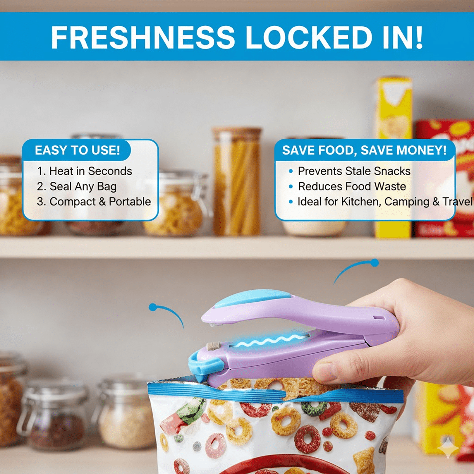 - Professional Heat Sealer will easily reseal original plastic bags, so food will stop being exposed to dust and bacteria. Store food in original packaging & help save the Earth.