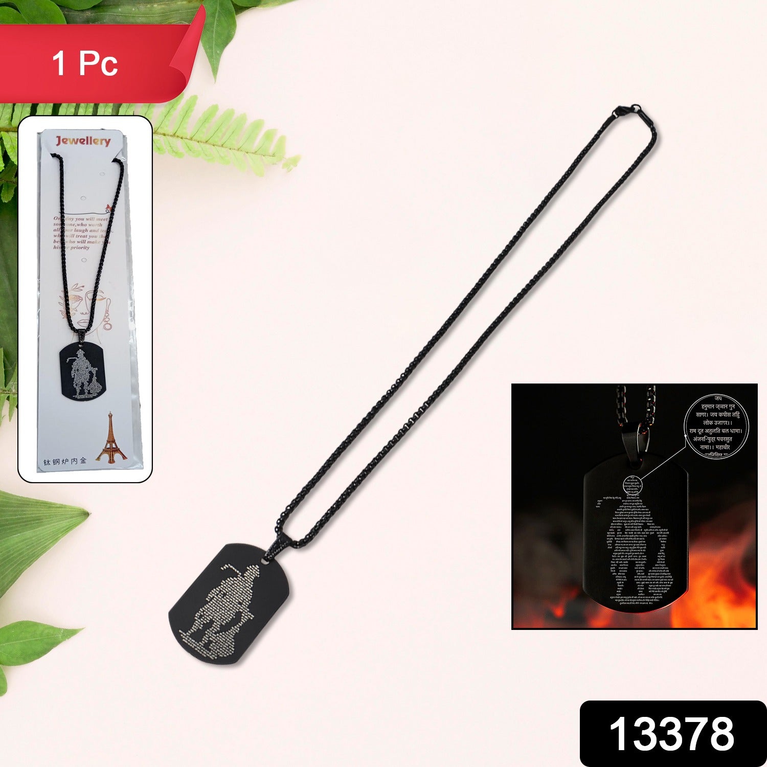 Pendant, Religious Necklace, Lord Hanuman Chalisa Locket with Gada Micro-carved Tag Stainless Steel Hanuman Necklace with Chain for Gift (1 Pc)