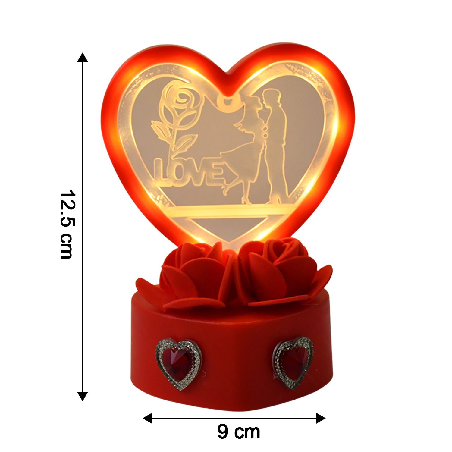 Heart-Shaped Love Couple Decorative Showpiece with Red Rose Base & Crystal Heart Embellishments – Perfect Gift for Valentine’s Day, Anniversaries, Weddings & Home Decor Battery Not Included- 1 Pcs
