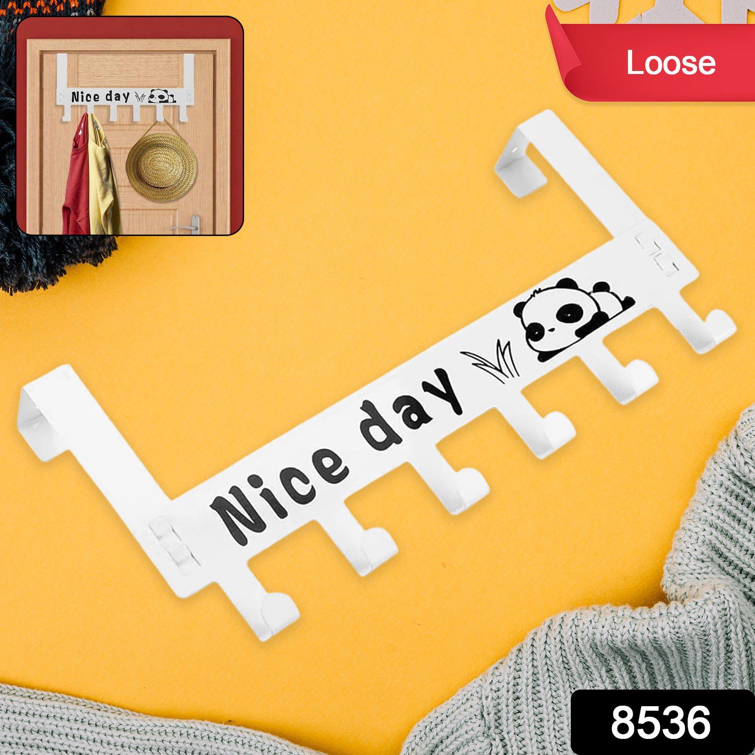 8536 Heavy-Duty Carbon Steel Cartoon Nice Day Over Door Hook Hanger Rack, Towel Hanger, Removable Door Hook, Coat, Scarf, Cloths Hanger (1 pc / 6 Hook)