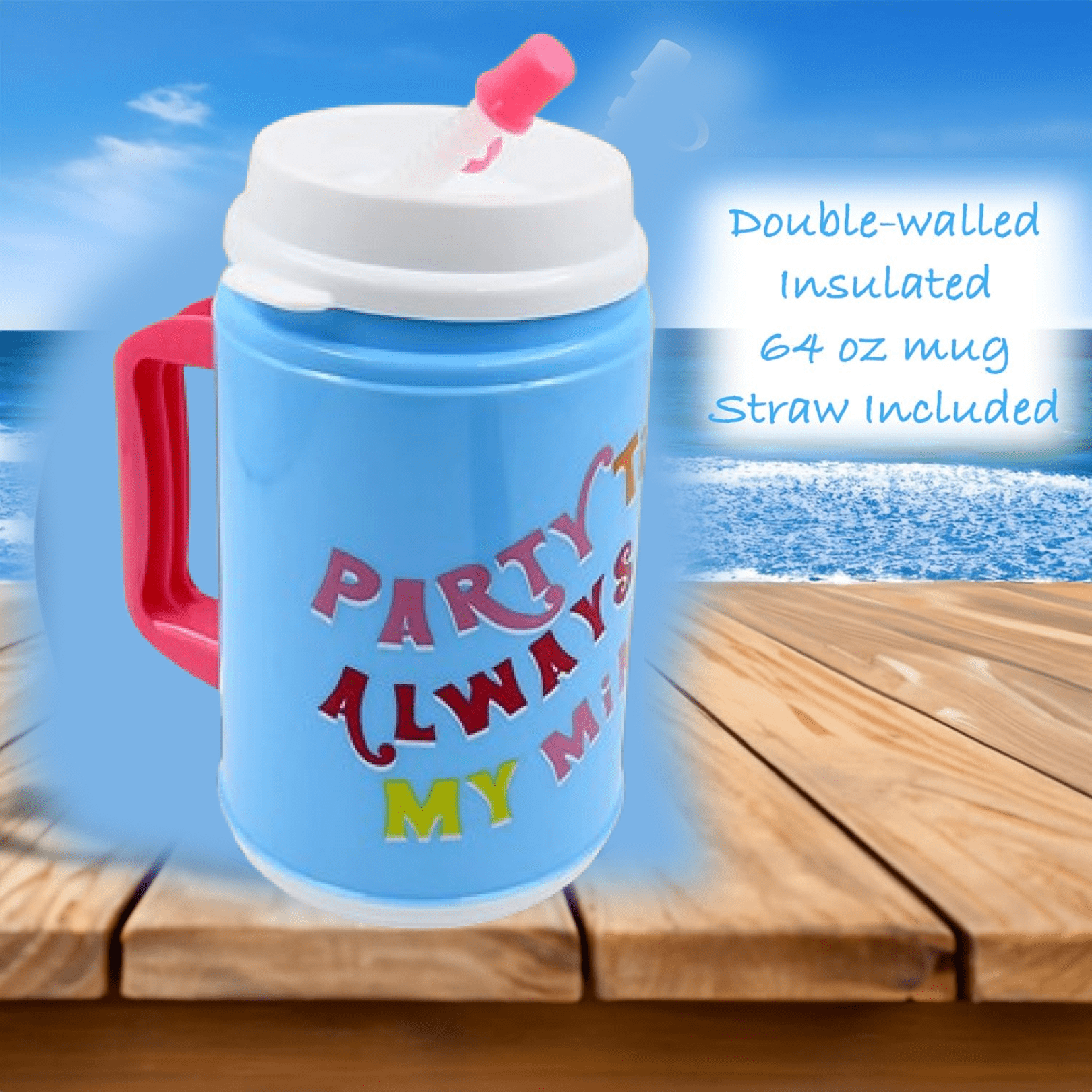 - With a simple water design that will appeal to both men and women. Whether you’re tailgating at a football game, camping in the great outdoors, or just enjoying a day at the beach, this mug will keep your drinks at the perfect.