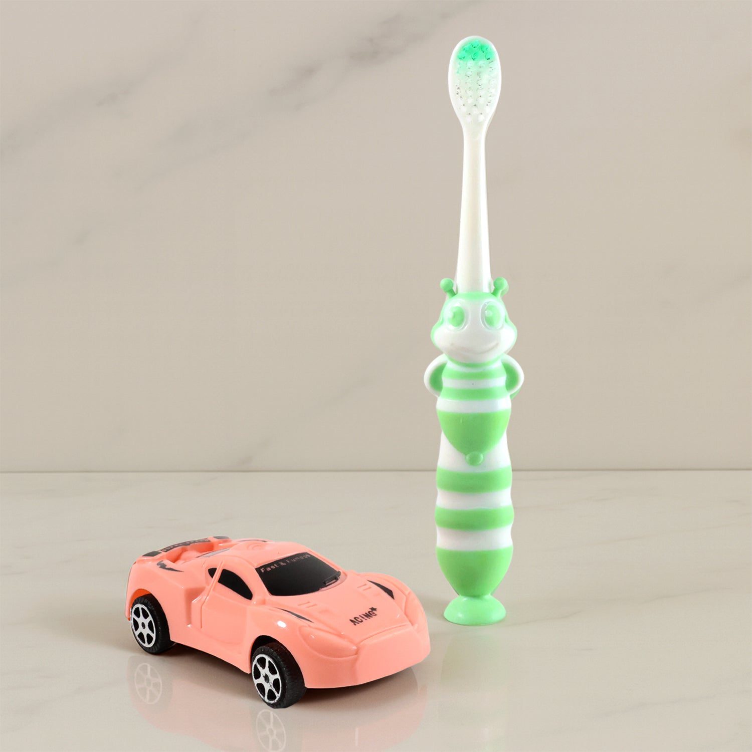 Caterpillar-Themed Toothbrush: The toothbrush features a fun and colorful caterpillar design that makes brushing teeth an exciting activity for kids.