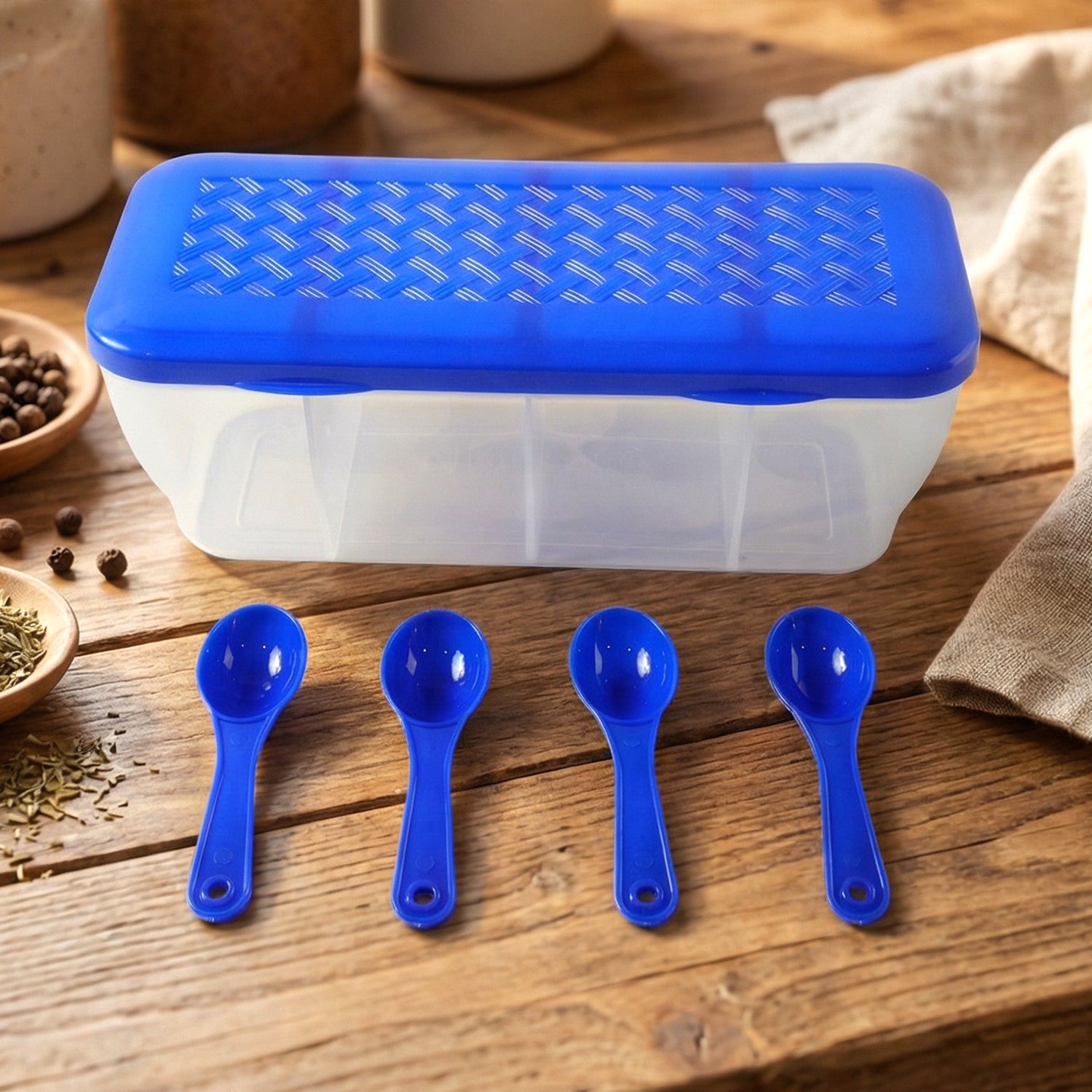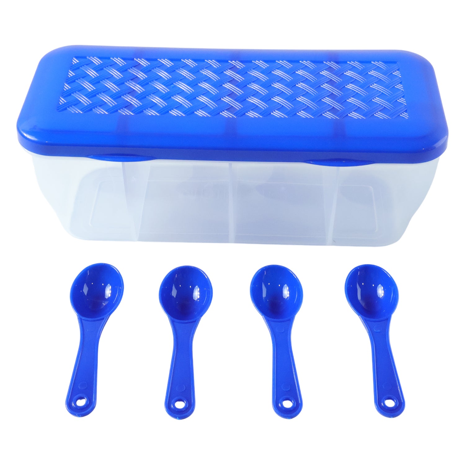 Kitchen Multipurpose Air-tight 4 Sections Storage Containers / Pickle (Achar) Jar with 4 spoon for each section (1 Pc / Mix Color)