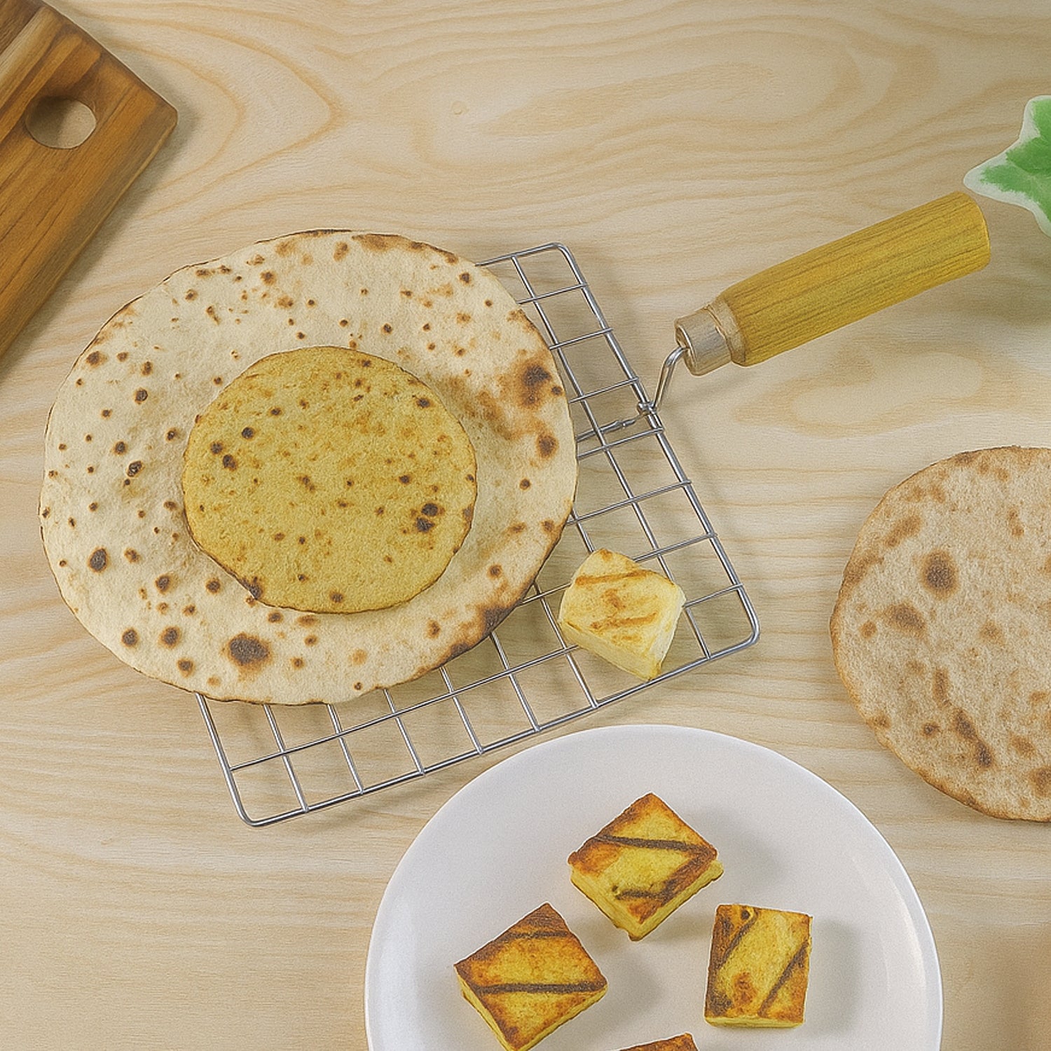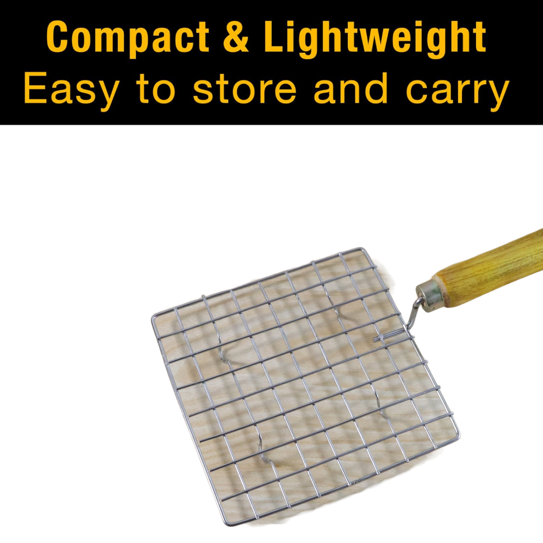 Kitchen Square Stainless Steel Roaster Jali, Barbecue Grill with Wooden Handle
