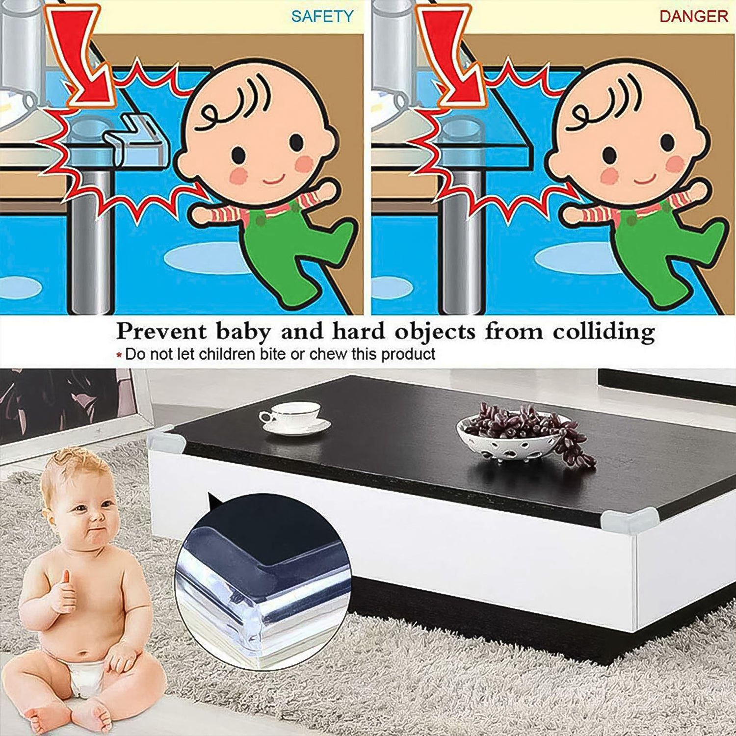 • EASY TO USE- Peel the tabs, ck the corner protector on your table corners, press for 1 minute, don’t move it within 12 hours, the double-sided tape will stick well after 12 hours. the high resistant adhesive adheres the furniture & edge bumpers very firmly to your table corners and resists any pulling away, no worry of looseninging off.