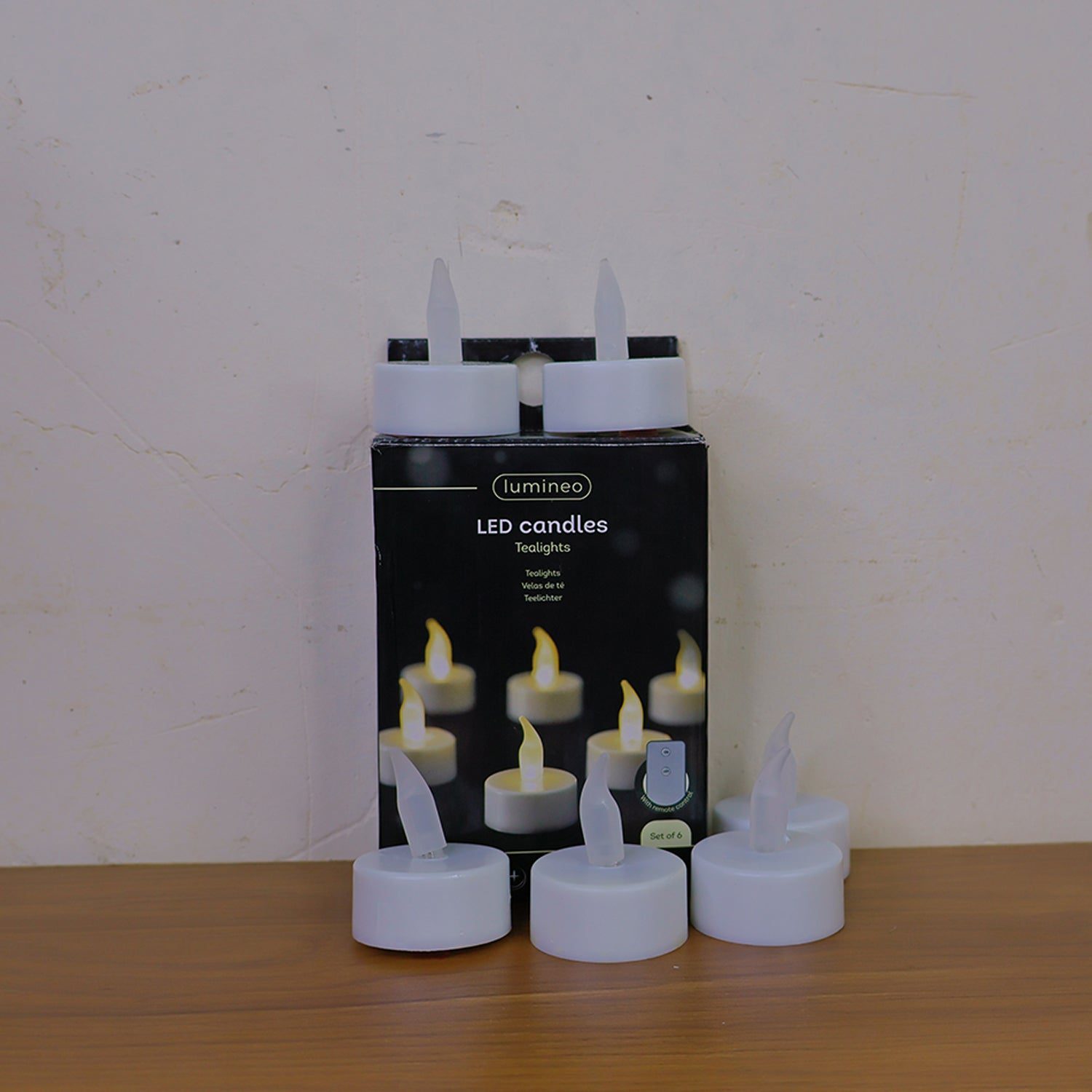 Set of 6 flameless LED tealight candles with realistic flickering flame.