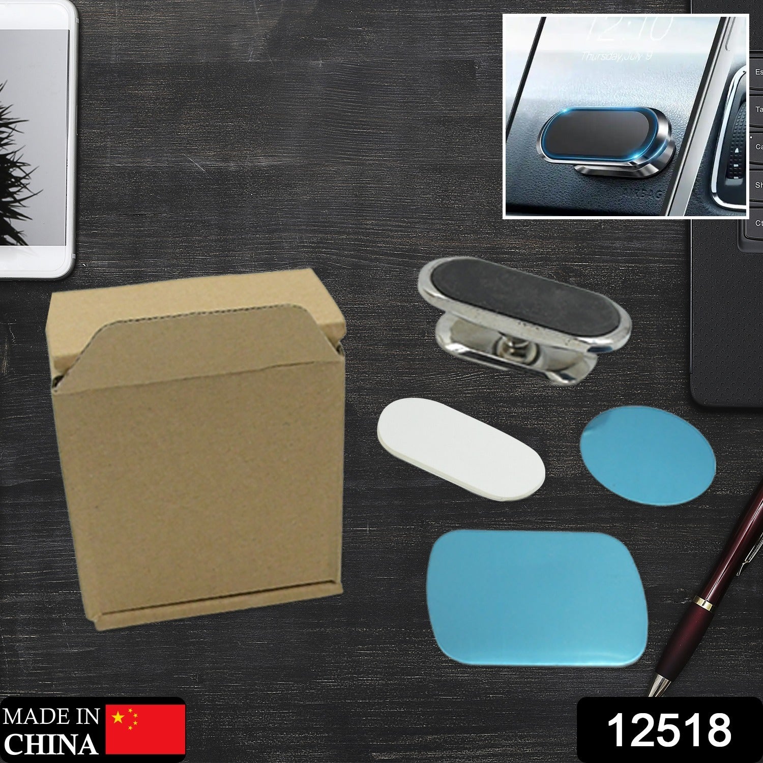 12518 Magnetic Phone Mount/Holder for Car, Super Strong Magnet Universal Car Mount, Dashboard 360° Rotation for Car, Desk, Office, Home & Kitchen for All Smart phones (1 Pc)