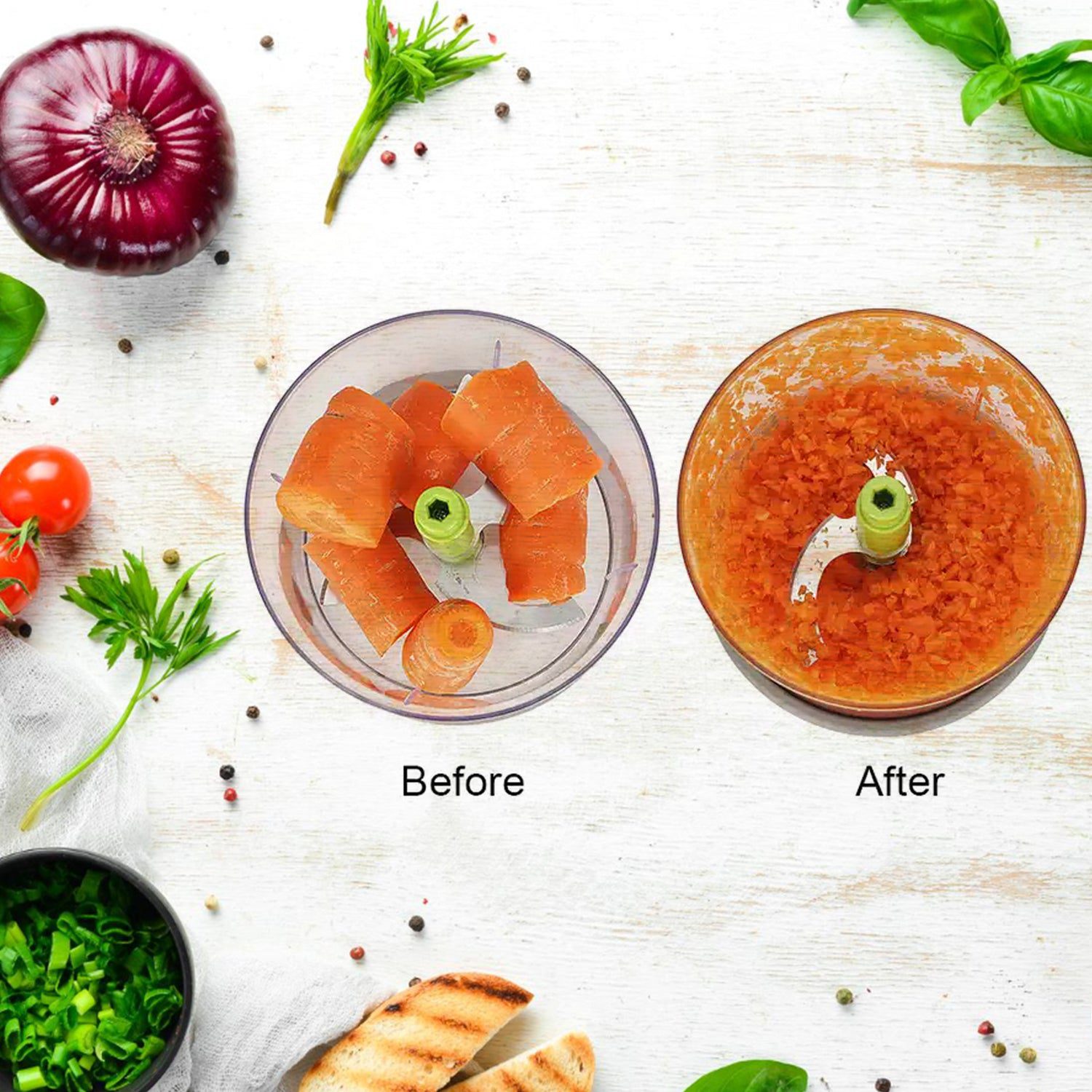 - FOOD SAFETY :- This food chopper is equipped with stainless steel blades that make it ultra sharp and 100% ABS free.