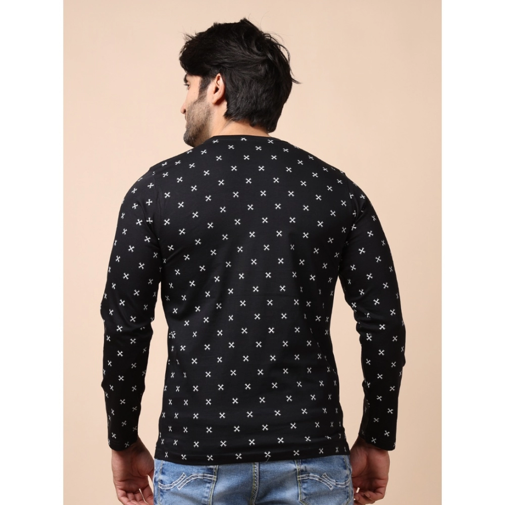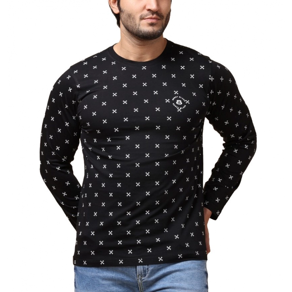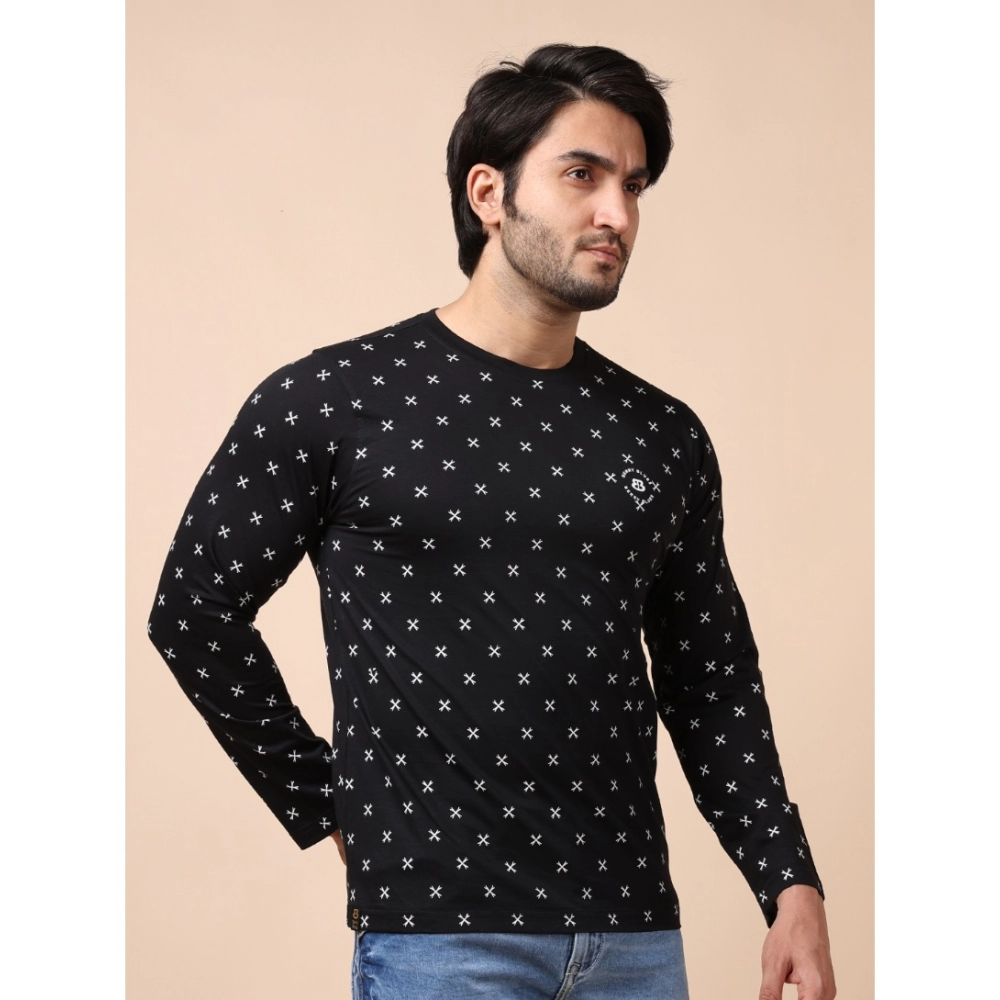 Premium Men’s Black Cotton Printed Round Neck Full Sleeve T-Shirt
