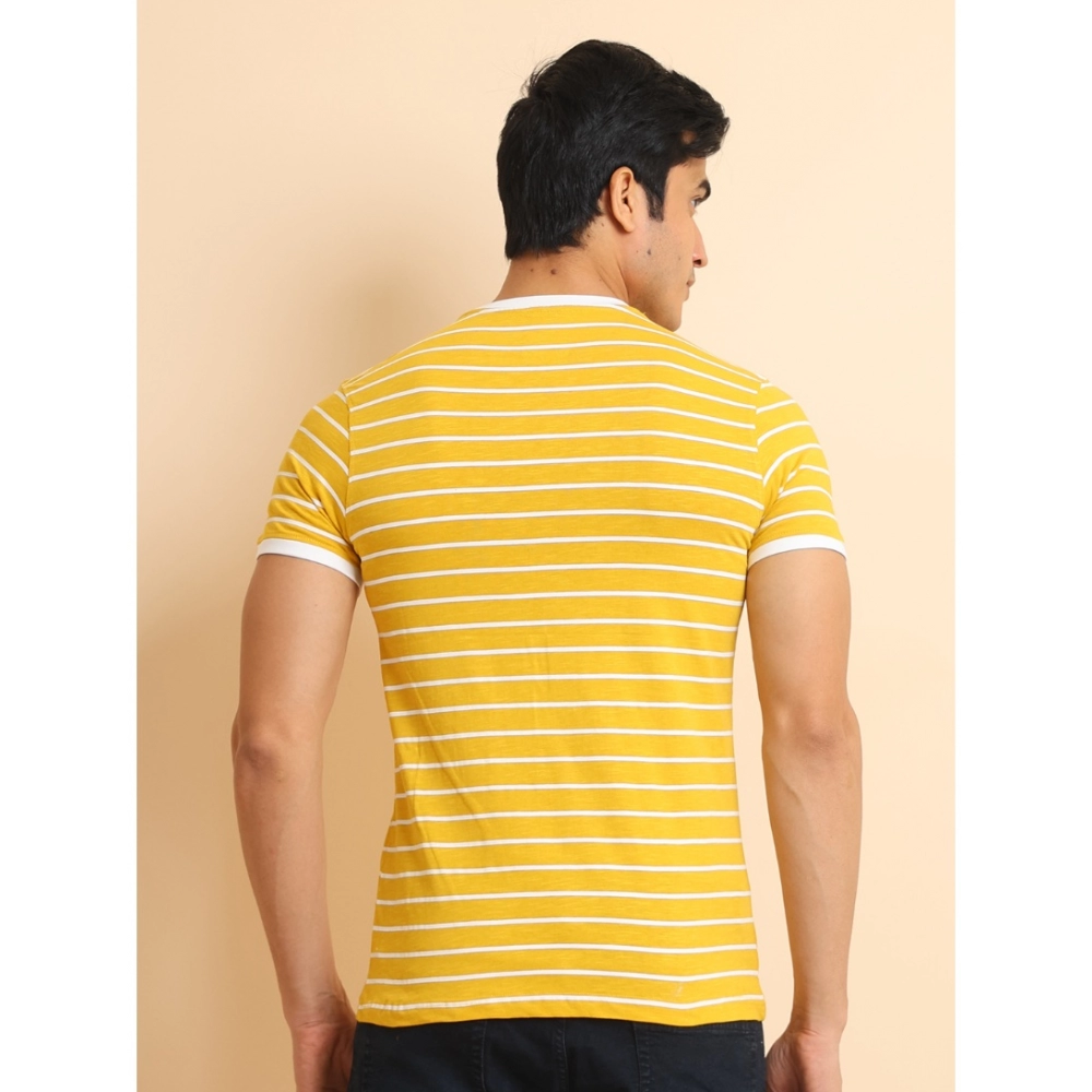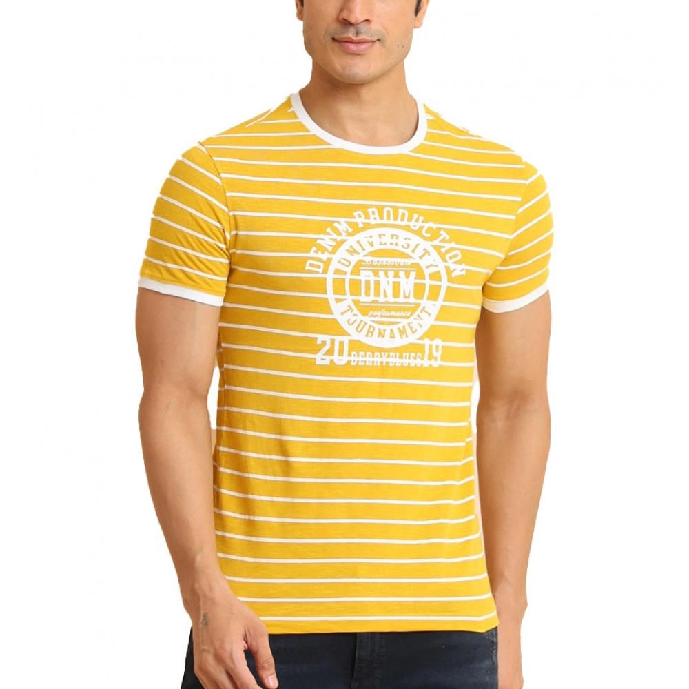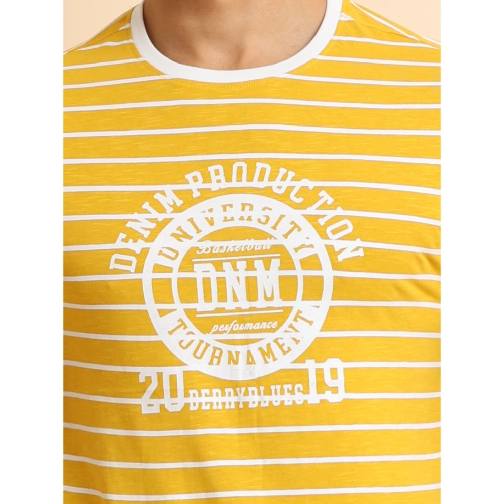 Stylish Men’s Mustard Casual Cotton Printed Round Neck Half Sleeve T-Shirt