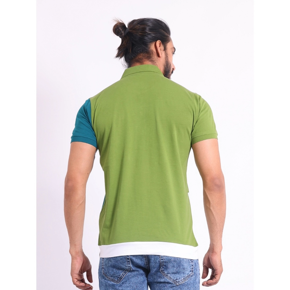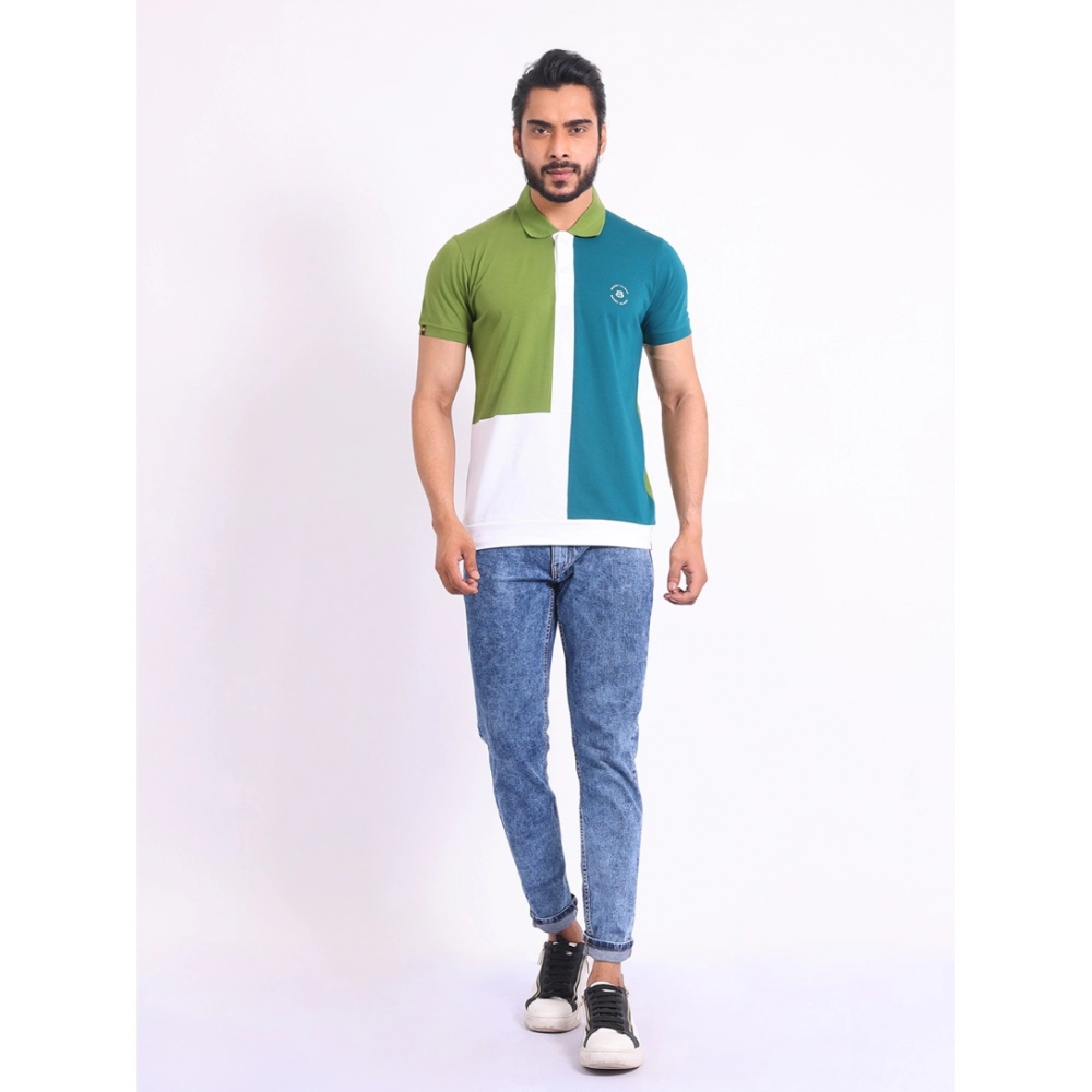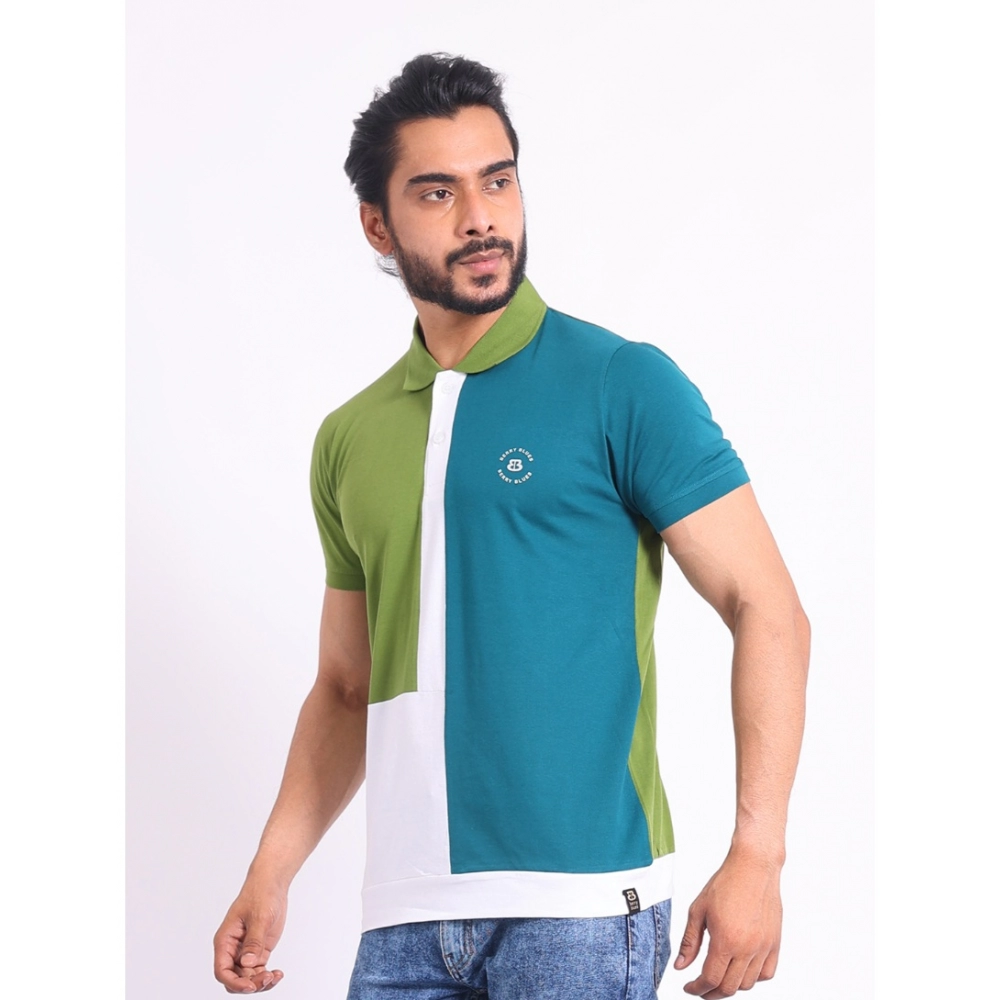 Stylish Men’s Printed Cotton Polo Neck Half Sleeve T-Shirt – Multicolor