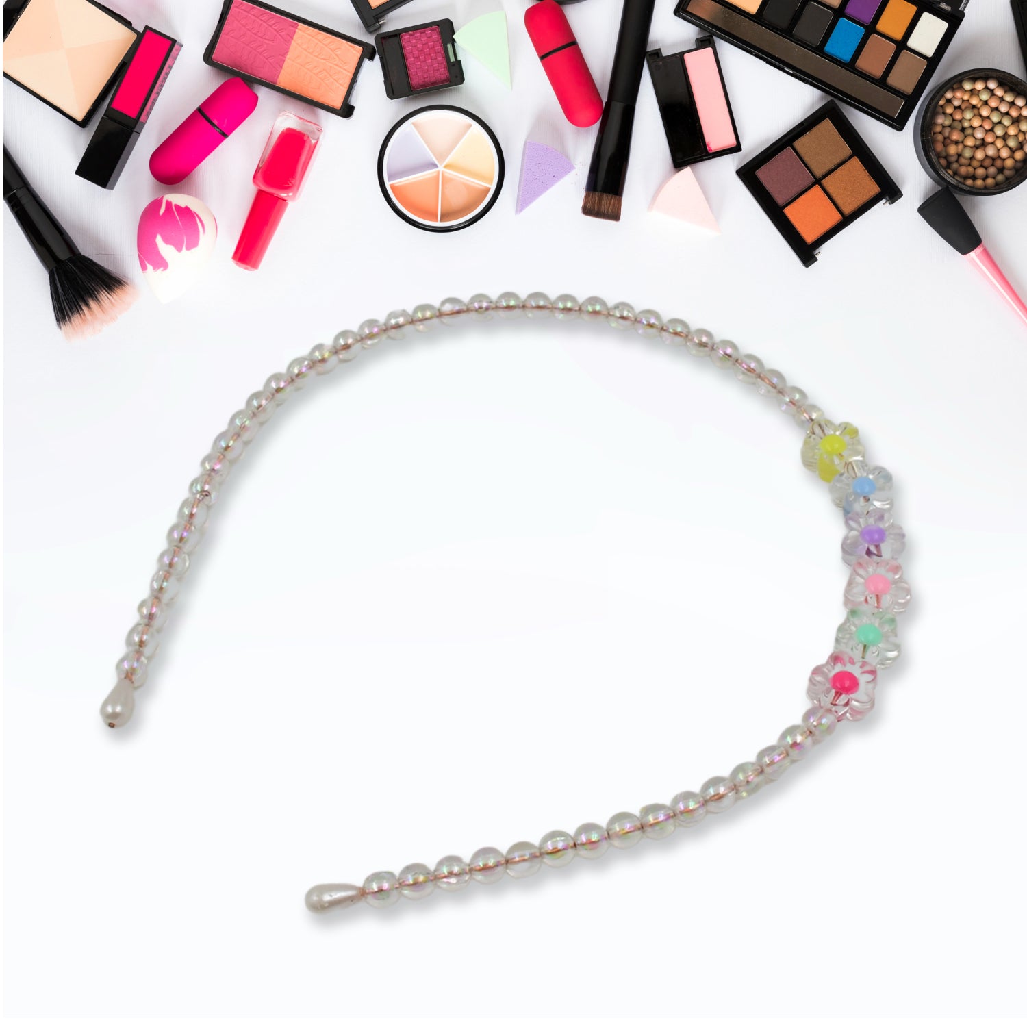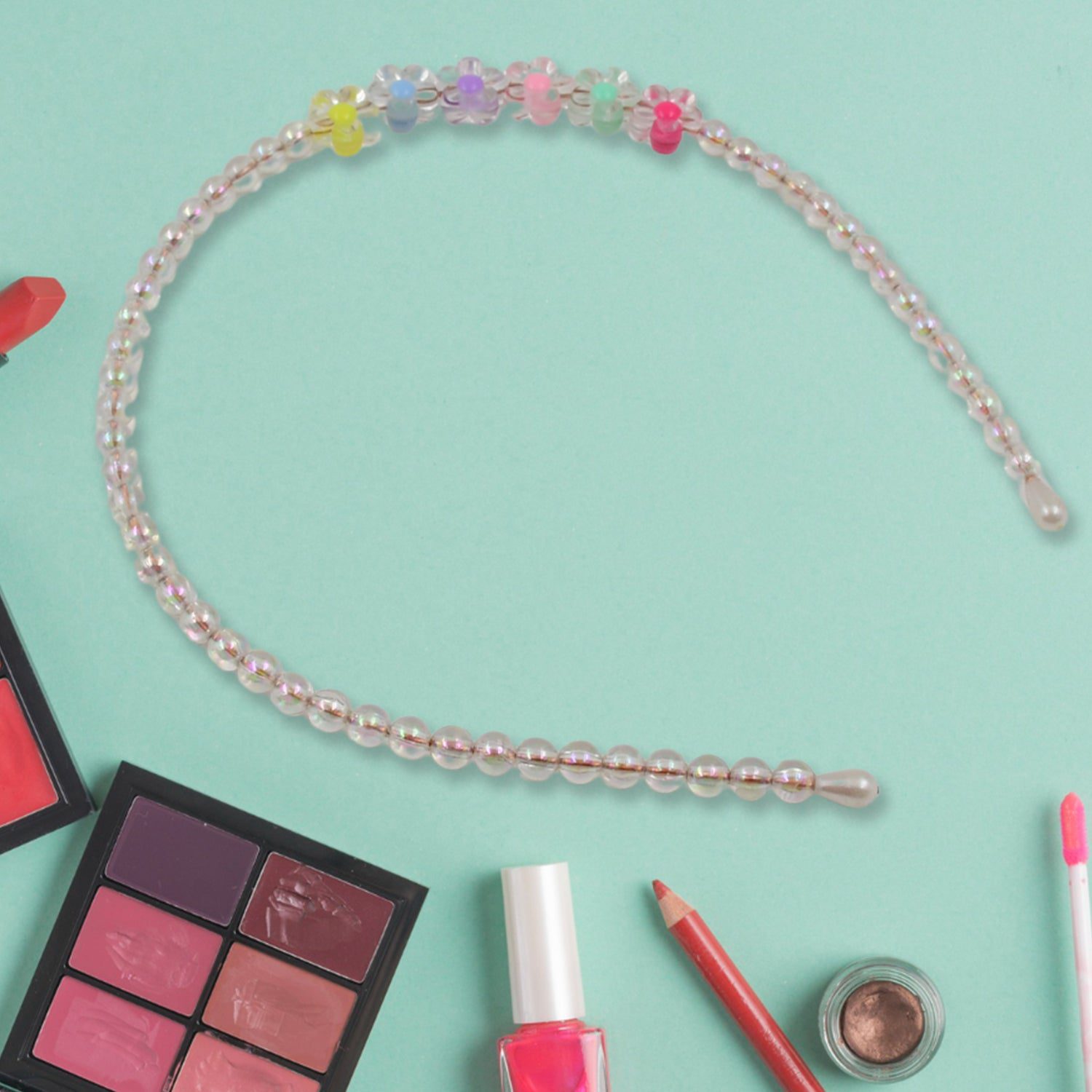 - Pearl hairband with colourful beads in mix design.